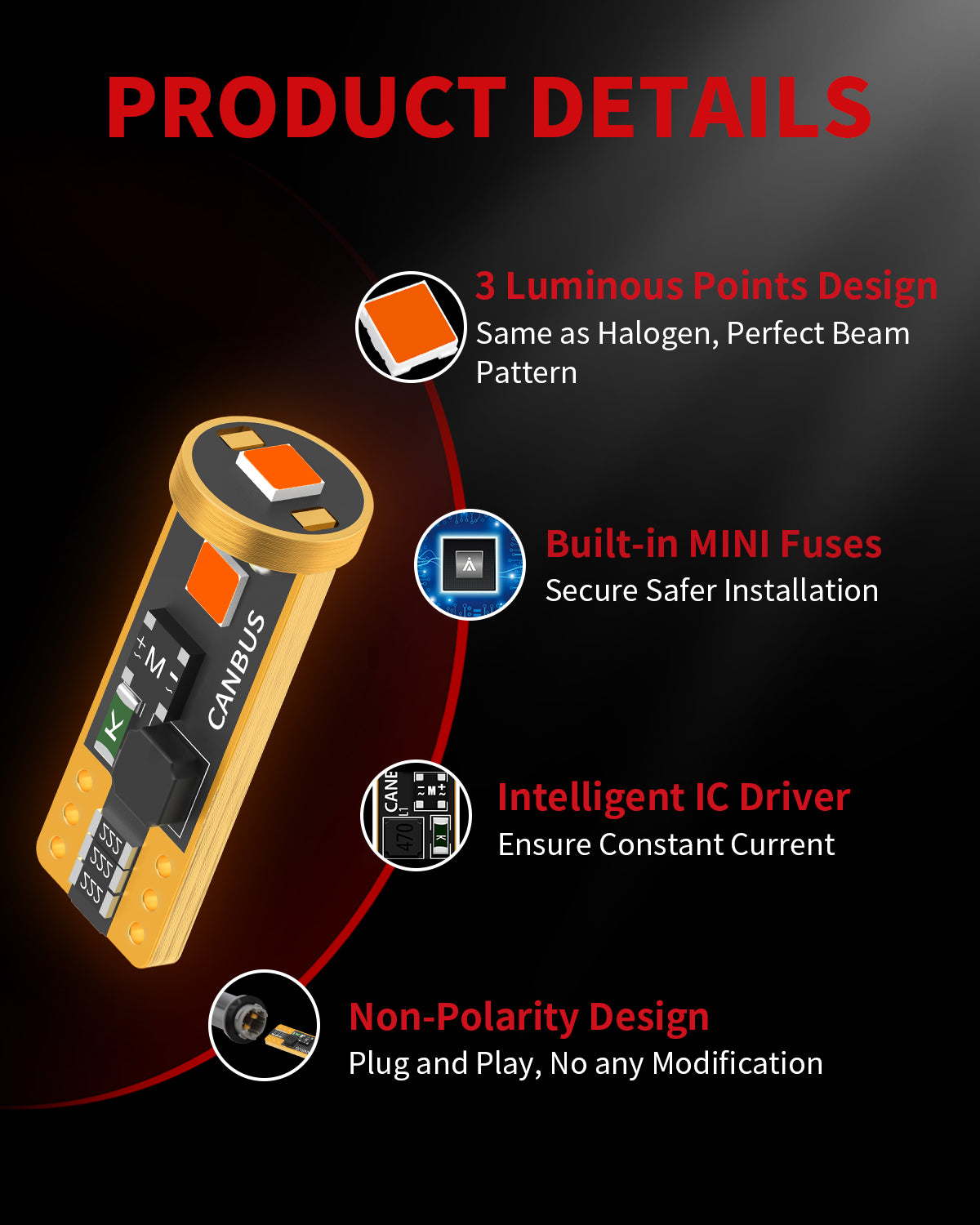 Beam Pattern: Premium LEDs replicate the halogen filament’s light source position, creating a sharp cutoff line and avoiding scattered beams.
