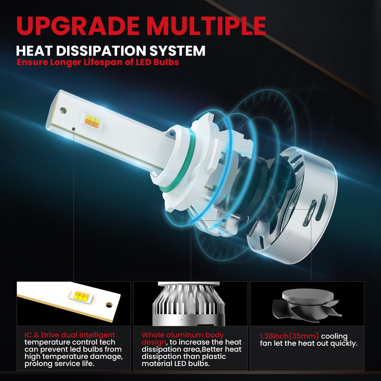 Efficient Cooling: Premium LEDs use aluminum heat sinks or built-in fans to maintain stable output under long operation.