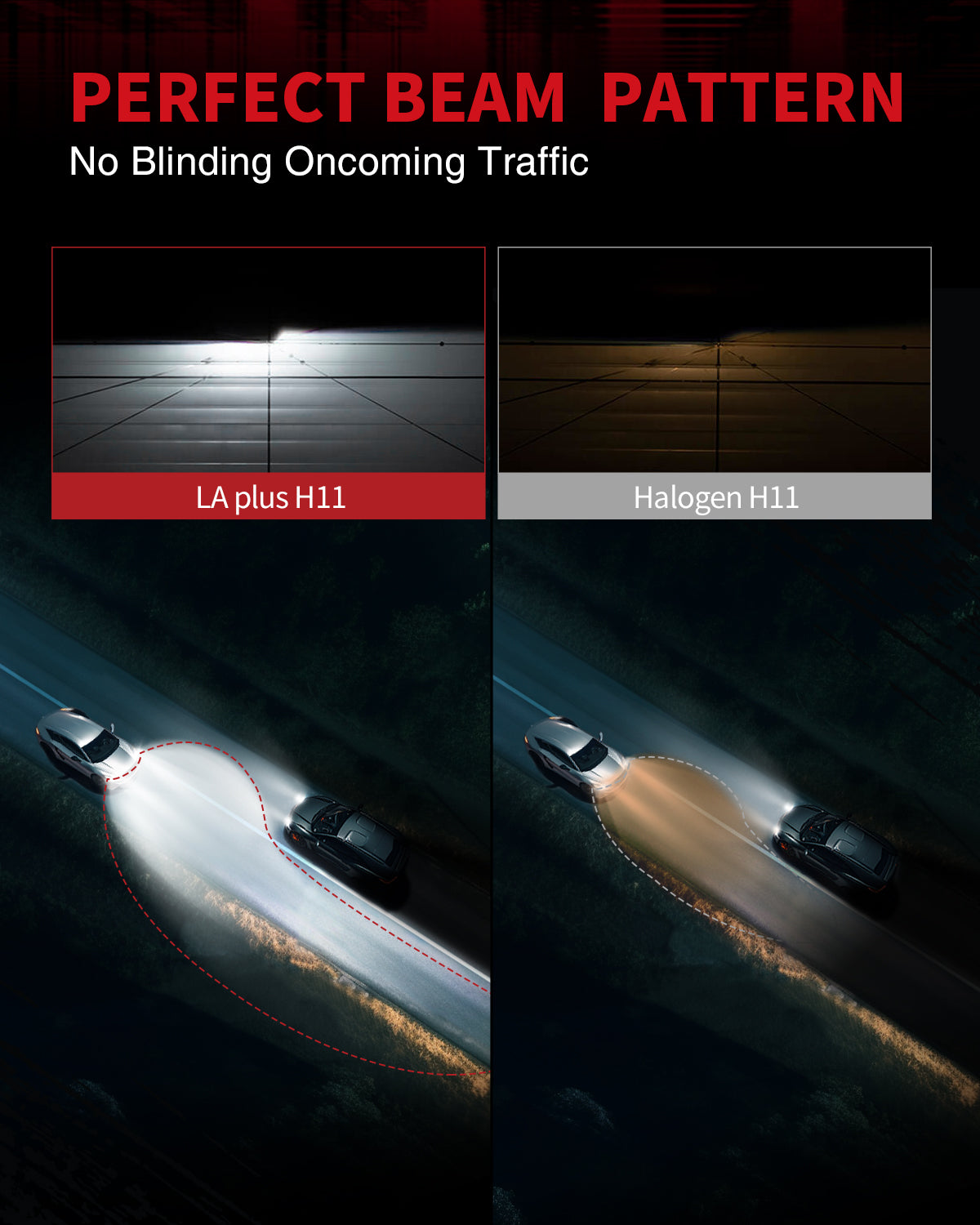 Beam Pattern: Premium LEDs replicate the halogen filament’s light source position, creating a sharp cutoff line and avoiding scattered beams.