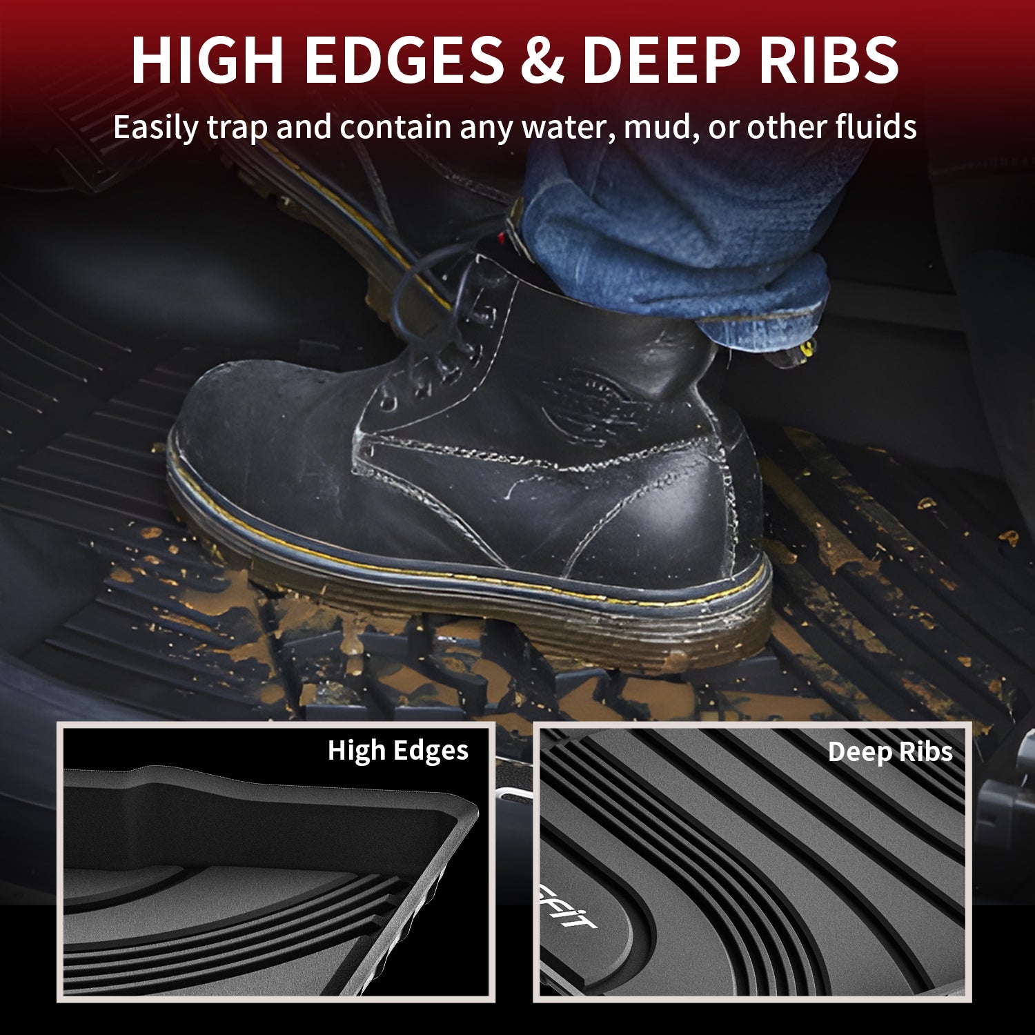 - Lasfit: One of Lasfit’s standout features is its extended coverage, including protection under the gas pedal. This is a key area that many standard mats neglect. Lasfit’s grooves direct dirt and water away from the pedal area, preventing debris buildup.