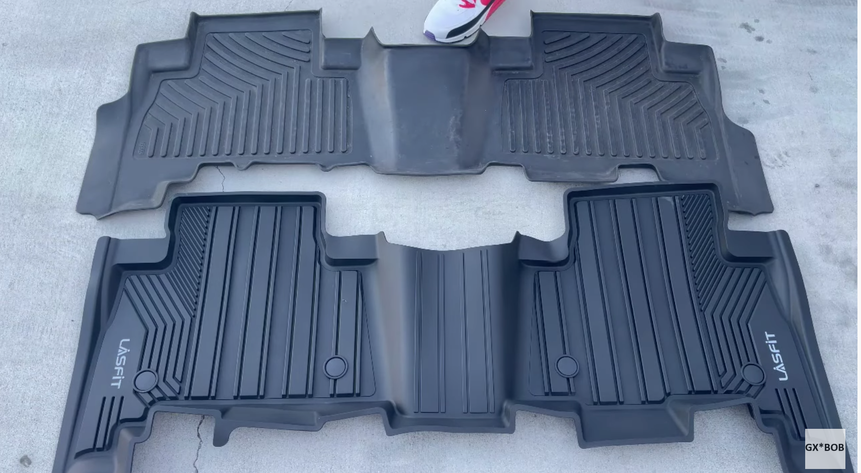 Here is the middle row seat, I see the Lasfit name in the middle row. And there are ridges in the middle row. They have walls on the top of the mats that contour to the floor and it also has a really really high wall in the back. These walls are to protect the carpet underneath the seat.