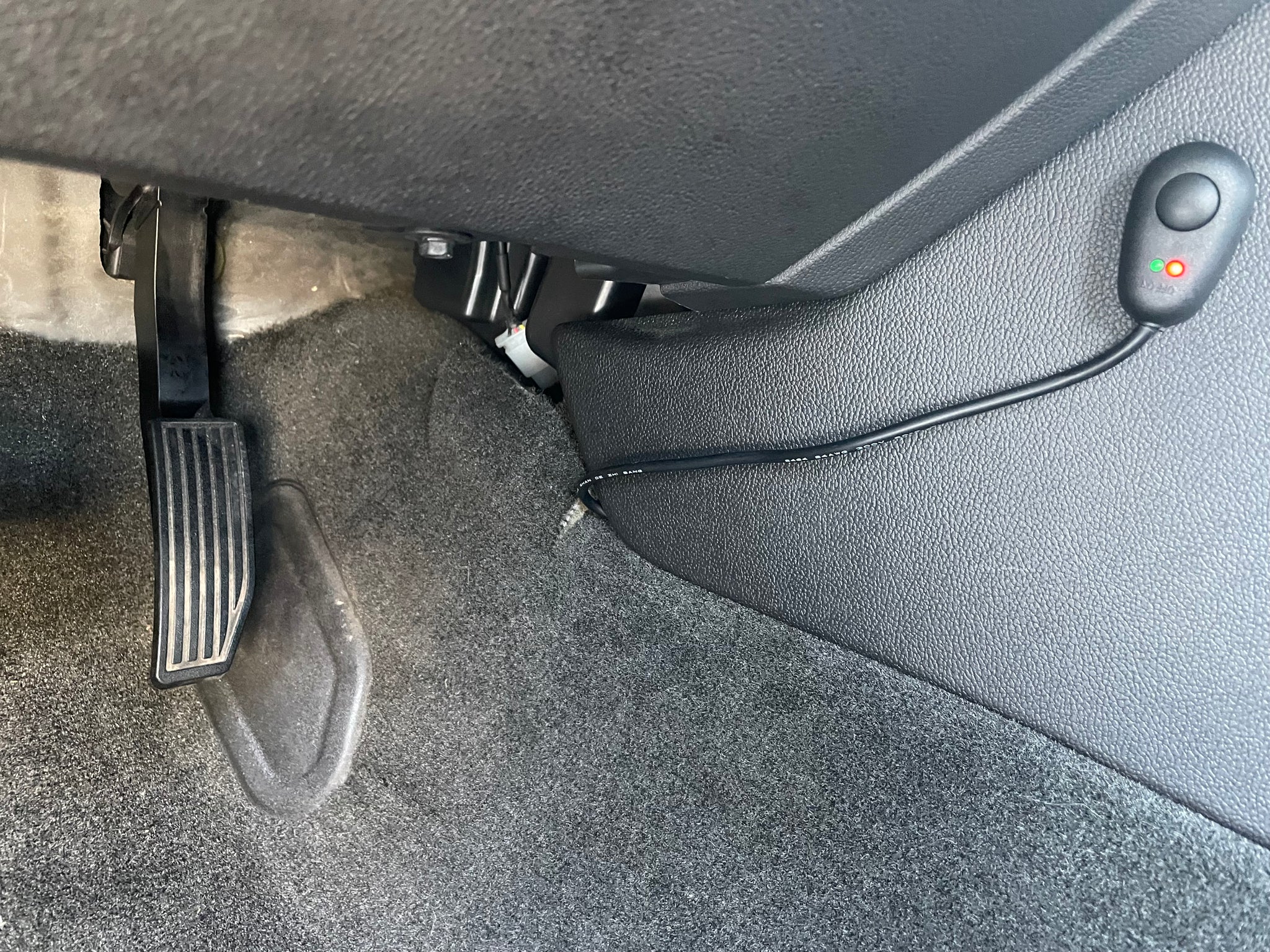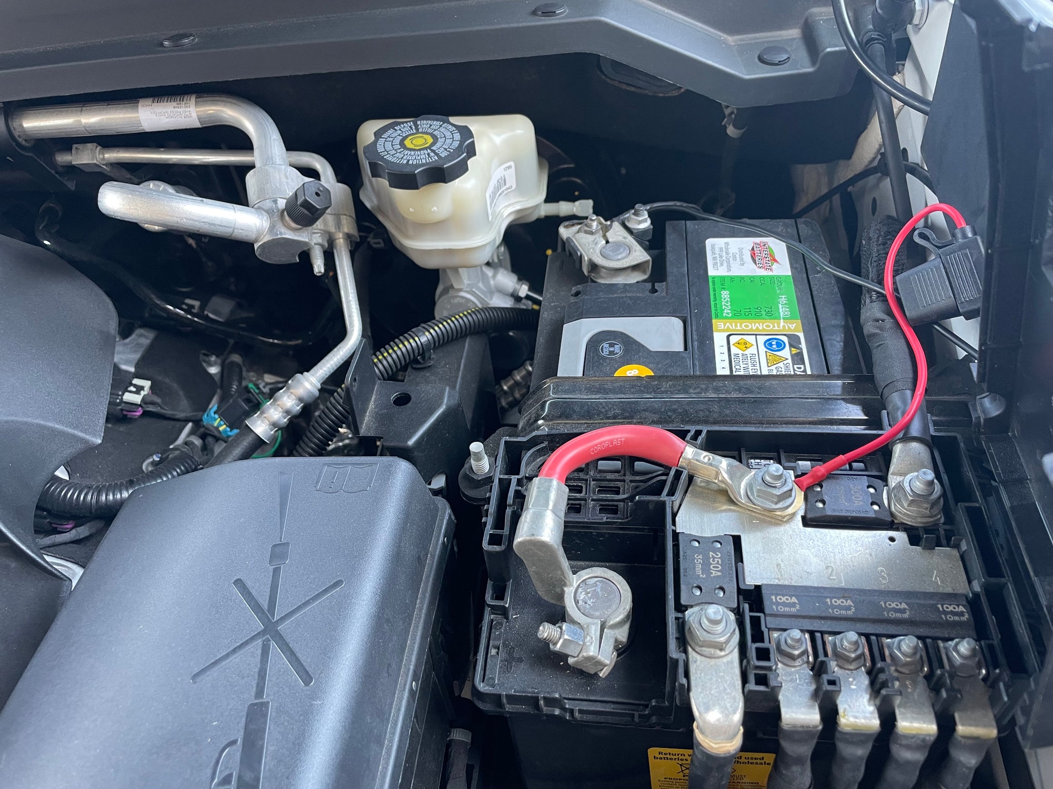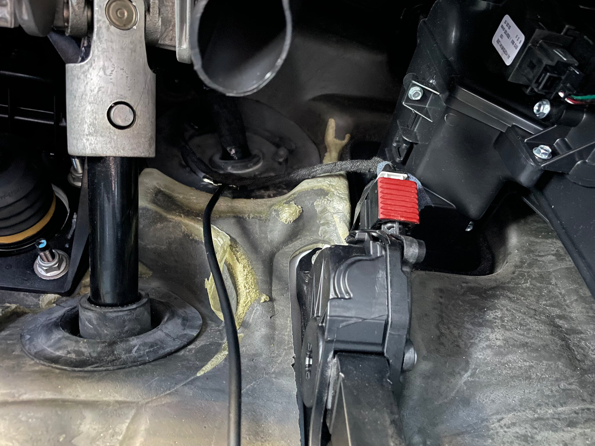 The last step to me was the hardest, running the wire through the fire wall. This took me a little while because it was hard for me to make a cut in the fire wall and pull it through. It is a lot easier if you have one person feeding the wire through the hood and one pulling it through the cab under the steering wheel. All you have to do is make a little cut with a knife through the fire wall (looks like a little rubber grommet with wires going into it behind the AC unit) then pull the wire through the cab just above the brake pedal. Once you pull wire through I connected the switch to it then fed the excess wires behind the plastic trim (you can easily do these with your fingers). Then I zip tied the wires back away from the pedals so they don’t get in the way of driving and mounted the button on the side for easy on/off.