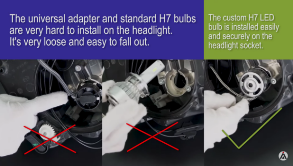 With the new custom design, we came up with the best solution for a hassle-free installation that guarantees you can finish the bulbs replacement by yourself. No worry about the loose installation or can’t find the right way to make the adapter locked tightly in the housing. We redesigned the adapter to make a perfect fit. You just need to take out the OEM adapter and install ours. They allow you to have a simple and fast installation within 10-15 minutes.