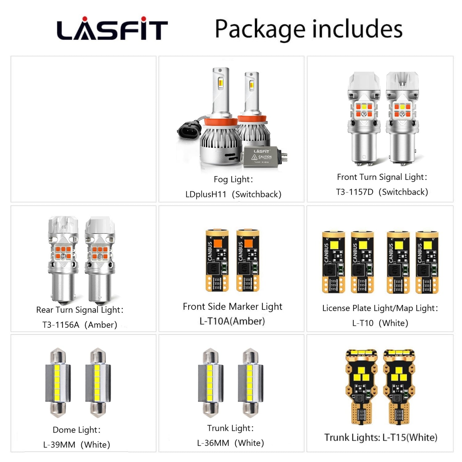 The latest upgraded Lasfit T3 Series, compared to halogen bulbs, offers 24W and 2000LM brightness. The switchback function allows you to enjoy 6000K bright white for your DRL/parking lights and 3000K amber yellow for your front turn signals. The advanced decoder system prevents hyper flash and error codes, ensuring you have ample time to smoothly enjoy the high brightness of your turn signals.