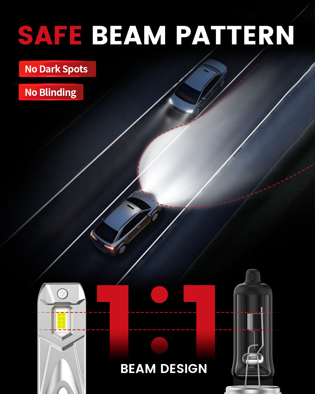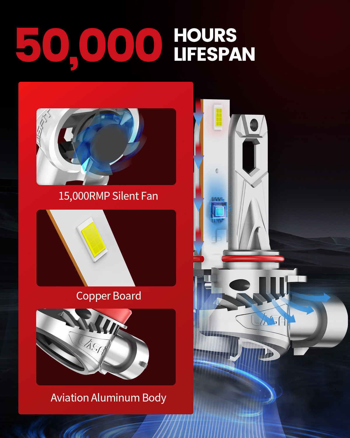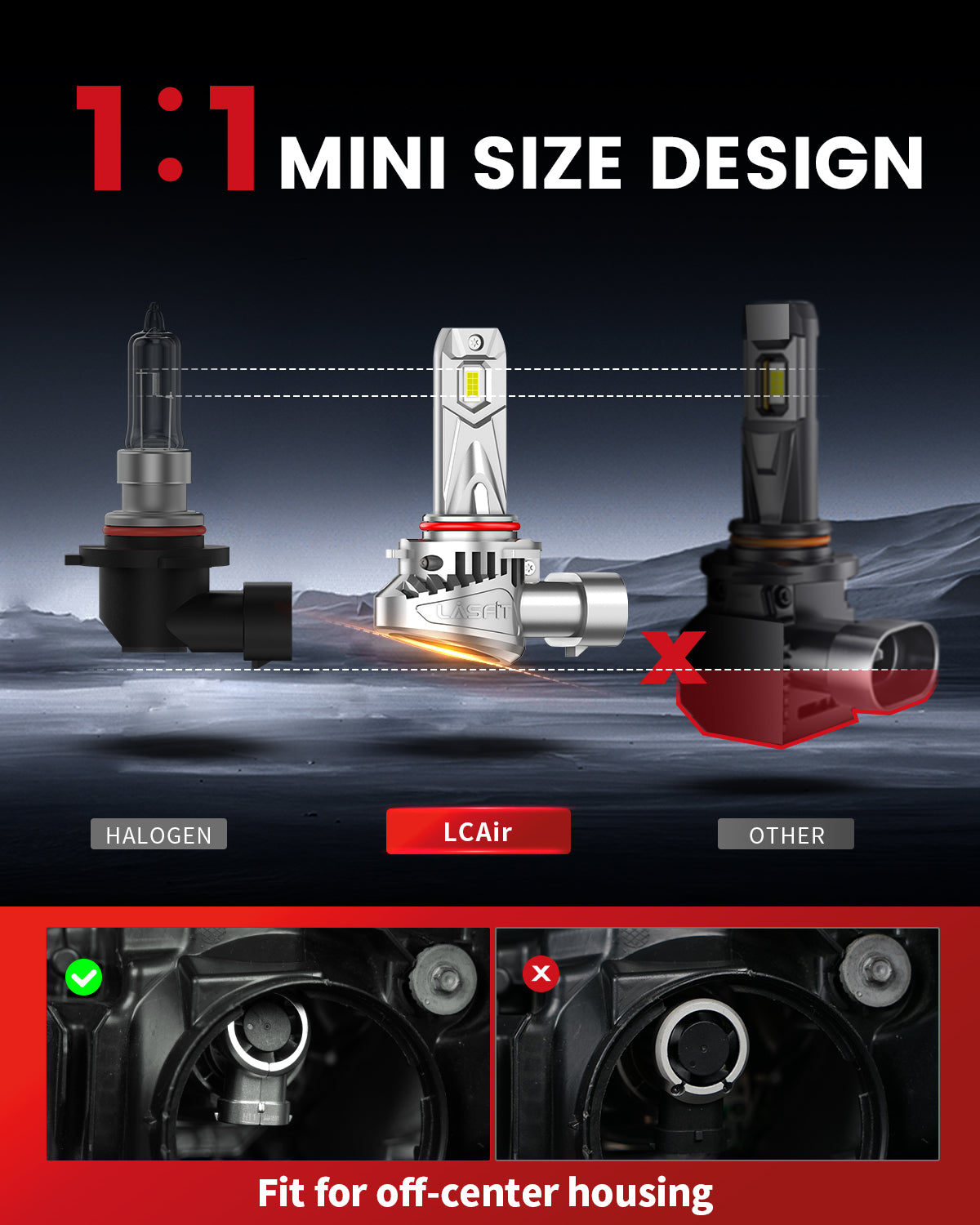 Each bulb is equipped with 16 LED chips, delivering 35W and 3500LM brightness, a remarkable 400% increase over halogen bulbs! The compact size allows for easy installation, offering plug-and-play convenience. With a 1.02 inches hydraulic cooling fan and ITC Chips, enjoy superior heat dissipation. Make LCair LED lights your top choice for replacing your original halogen bulbs!