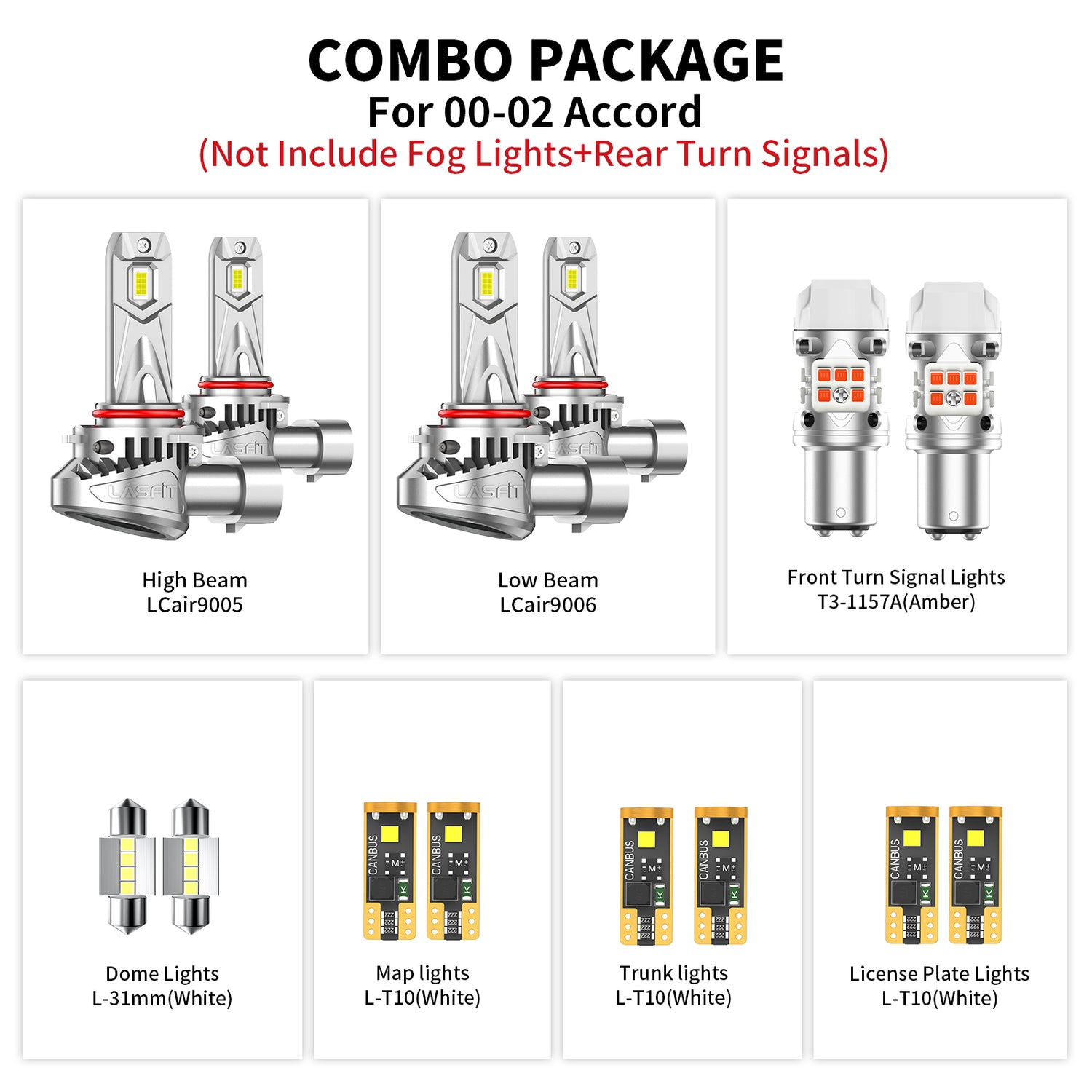 All of LED lights on this page are specially fit for Honda Accord 2000 20021 2002 2003 2004 2005 2006 2007, including forward lighting, front & rear turn signal light, backup light, brake/tail light, license plate light, trunk light, interior dome / map light.