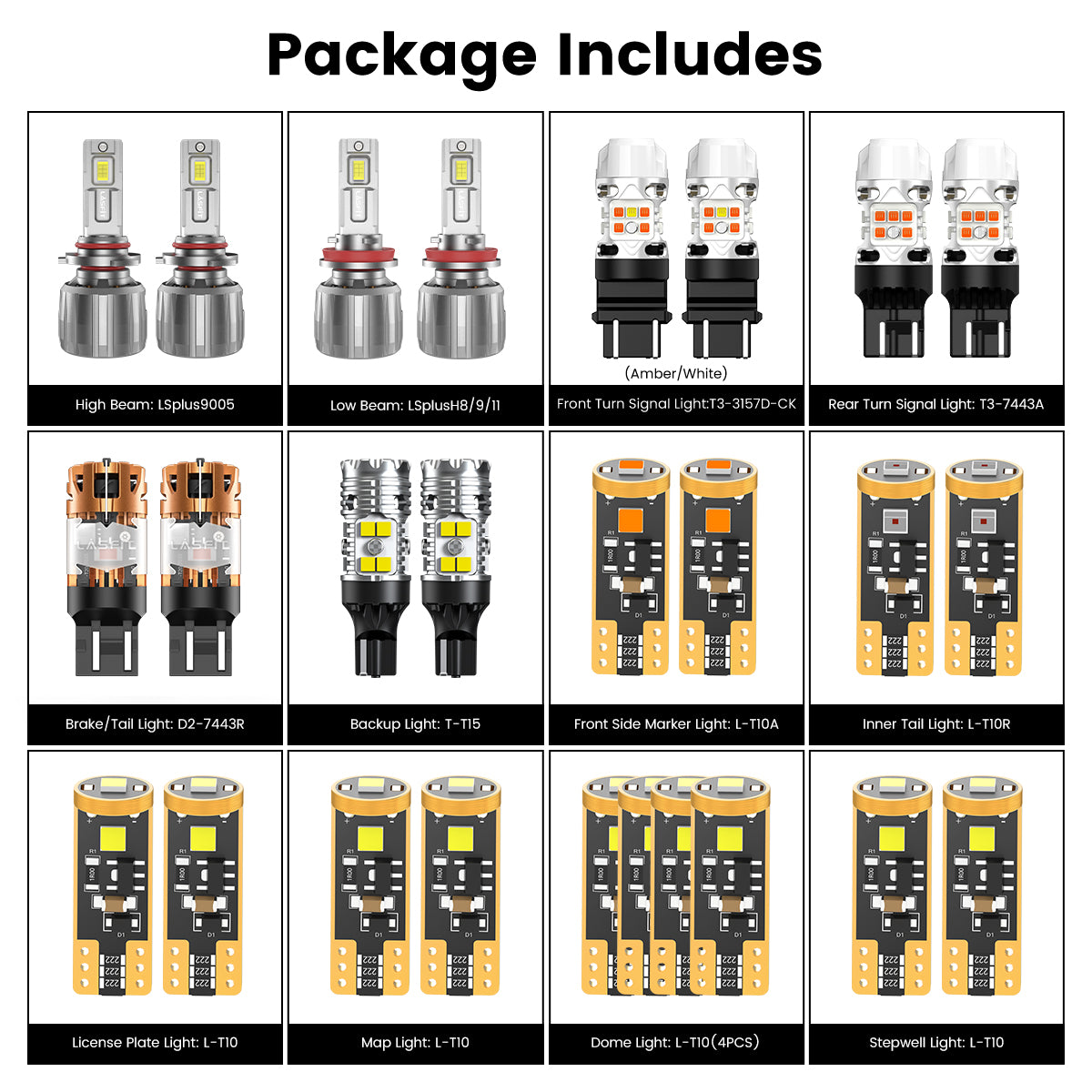 - Ultra-High Brightness. Clear Visibility: The Lasfit LSplus series is equipped with 12 PCS 4575 66*66MTL LED chips, delivering an impressive 65W and 6500LM brightness for your Sequoia headlight bulbs.