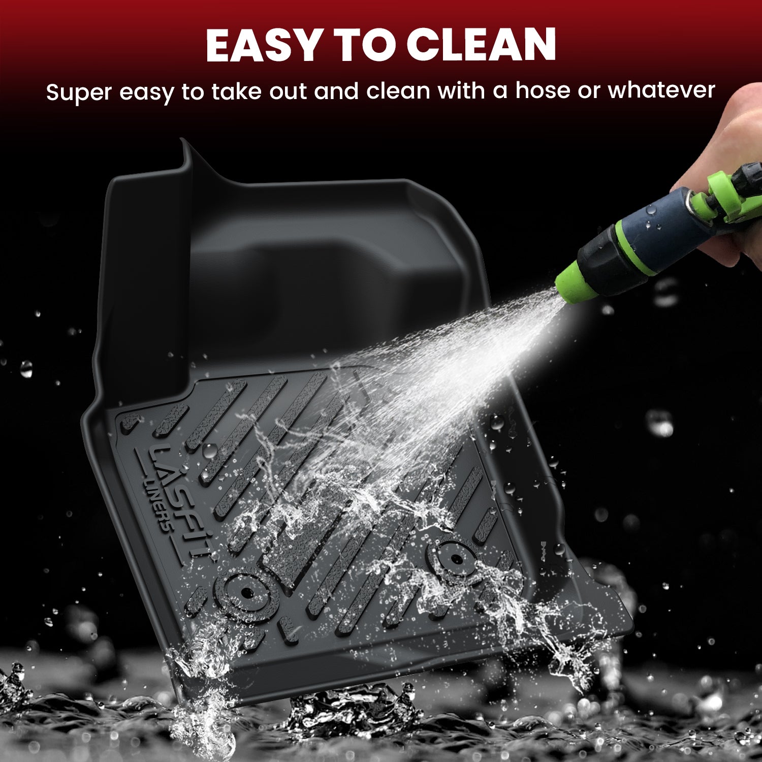 Our all-weather floor mats are designed to withstand any weather condition. They are stain-resistant, waterproof, and anti-slip, making them easy to clean and maintain. Built from high-quality materials, these liners won't break down under extreme weather or daily wear like rain, slush, snow, or mud. The durable edges resist slouching and won't deform in winter. After cleaning, the mats will look brand new, maintaining their effectiveness and appearance.