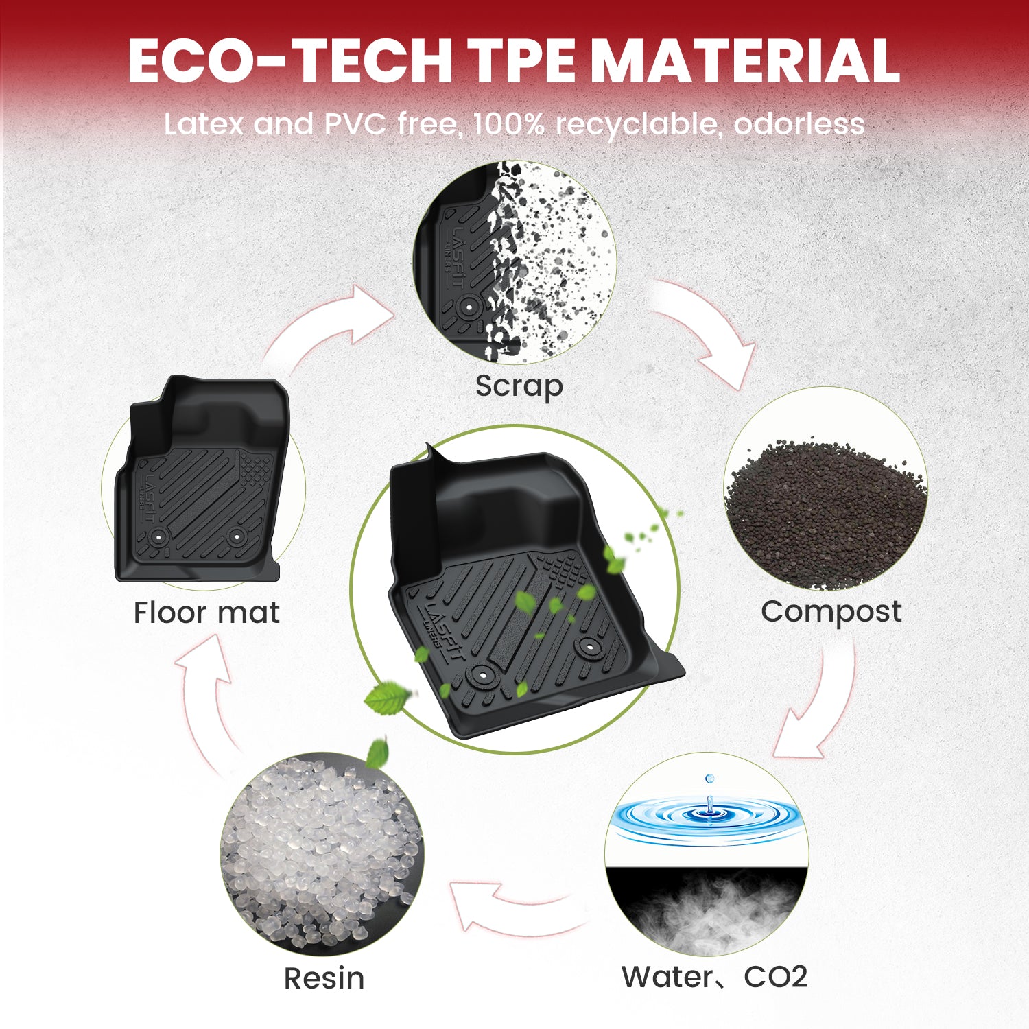 Lasfit TPE (Thermoplastic Elastomer) floor mats provide significant advantages over traditional rubber mats. They are more flexible, durable, and resistant to wear and tear. Made from recyclable materials and free from harmful chemicals, TPE mats are environmentally friendly and offer a safer, more sustainable option for your Lincoln MKZ.