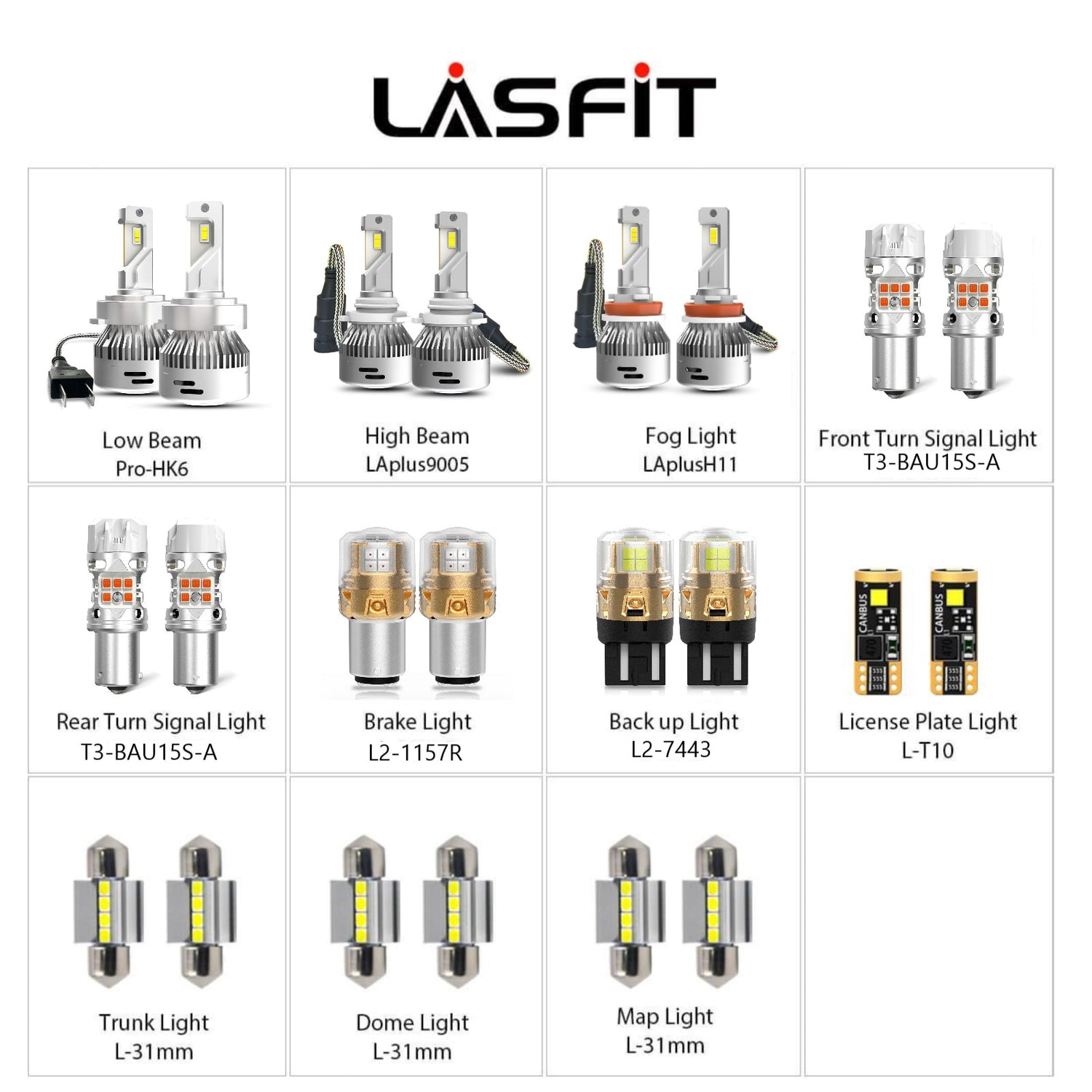 - High Beam: 9005 LED Bulbs LAplus Series | 6000K white, 30W, 3000LM per bulb