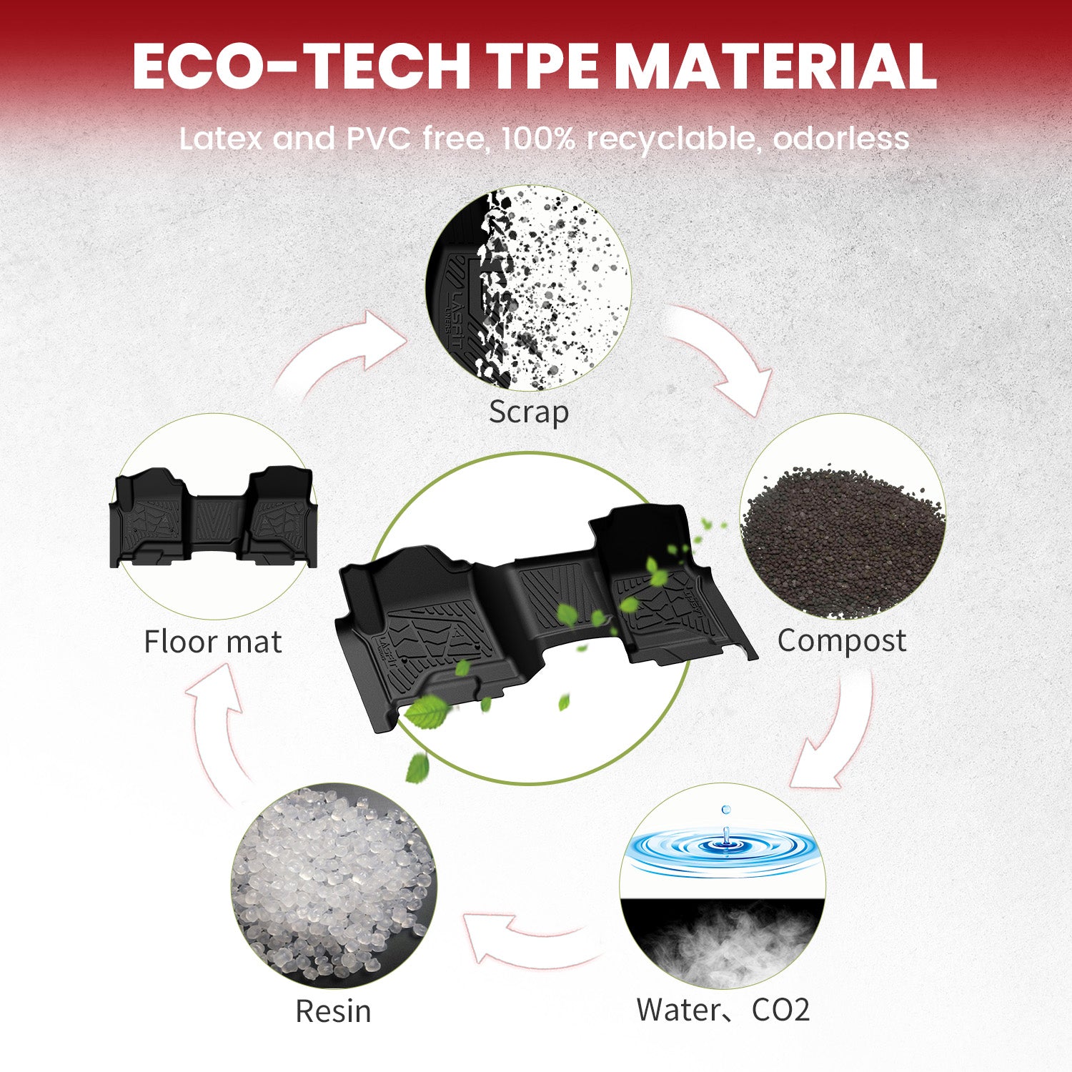 Lasfit TPE (Thermoplastic Elastomer) floor mats provide significant advantages over traditional rubber mats. They are more flexible, durable, and resistant to wear and tear. Made from recyclable materials and free from harmful chemicals, TPE mats are environmentally friendly and offer a safer, more sustainable option for your GMC Sierra 1500.