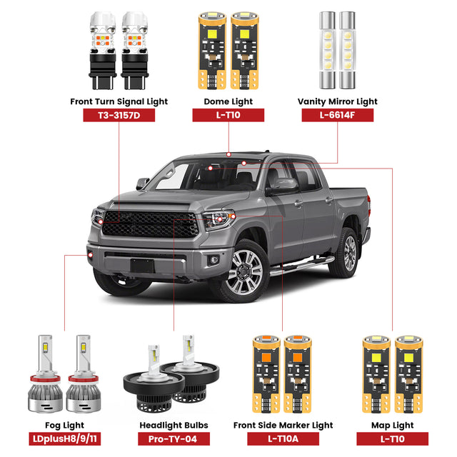 Lasfit offers bright, durable, and high-quality LED bulbs specifically designed for different trims of your Toyota Tundra. With quick and easy installation, you can upgrade your lighting in minutes and enjoy a brighter, safer driving experience.