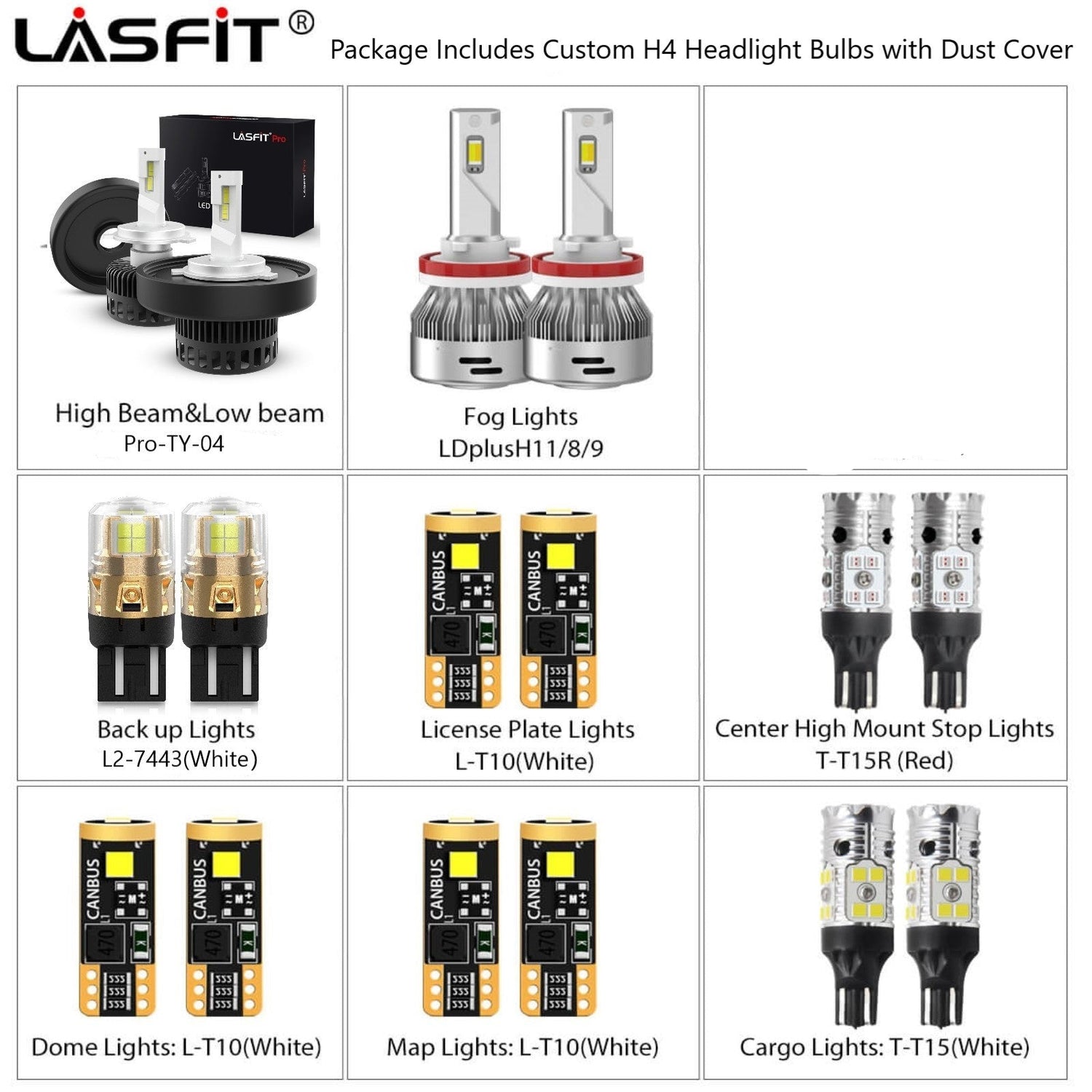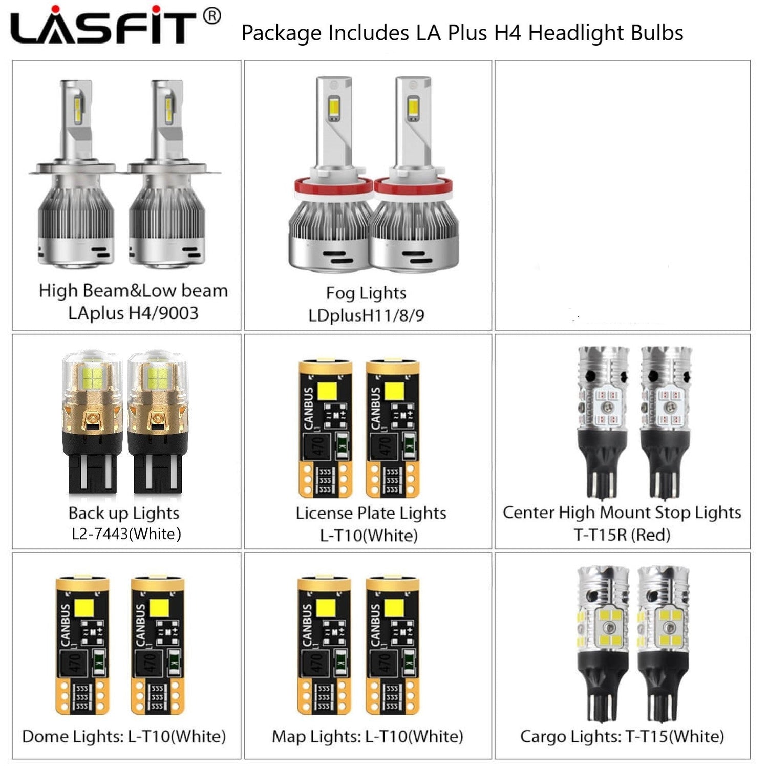 LAplus series, 60W/set, 6000LM/set, 6000K bright white, 2 bulbs in total.