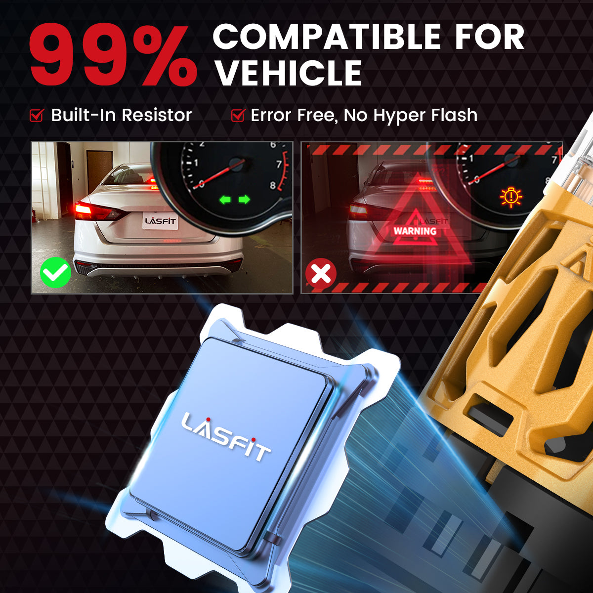 LA plus series with a smaller size for plug and play installation and 360 degrees adjustable mounting collar for better beam pattern. The new cooling system with a unique ball-bearing fan preventing the driving from the loud noise from the cooling fan and intelligent IC make sure the LED conversion kits last longer.
