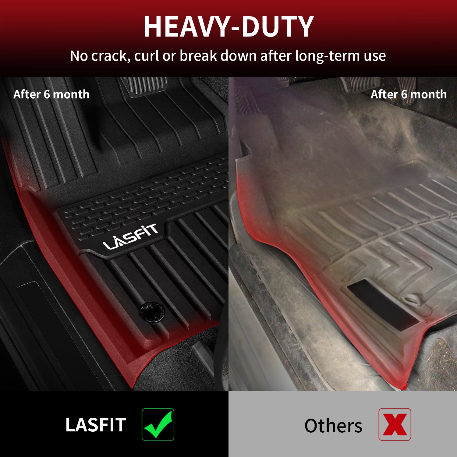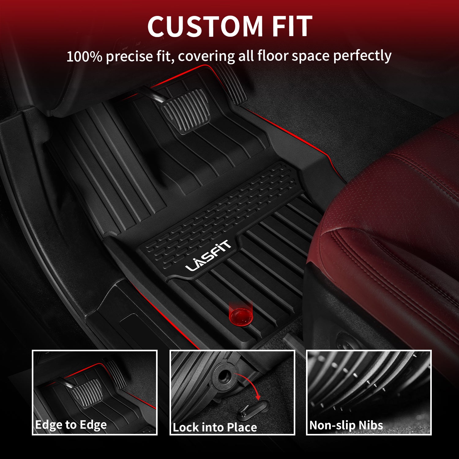 Different from other traditional liners, Lasfit used the design of the reinforcing edge to ensure the slippy edges, which make the liners will seamlessly joint the floor. No need to cut. No gap, no-curl up.