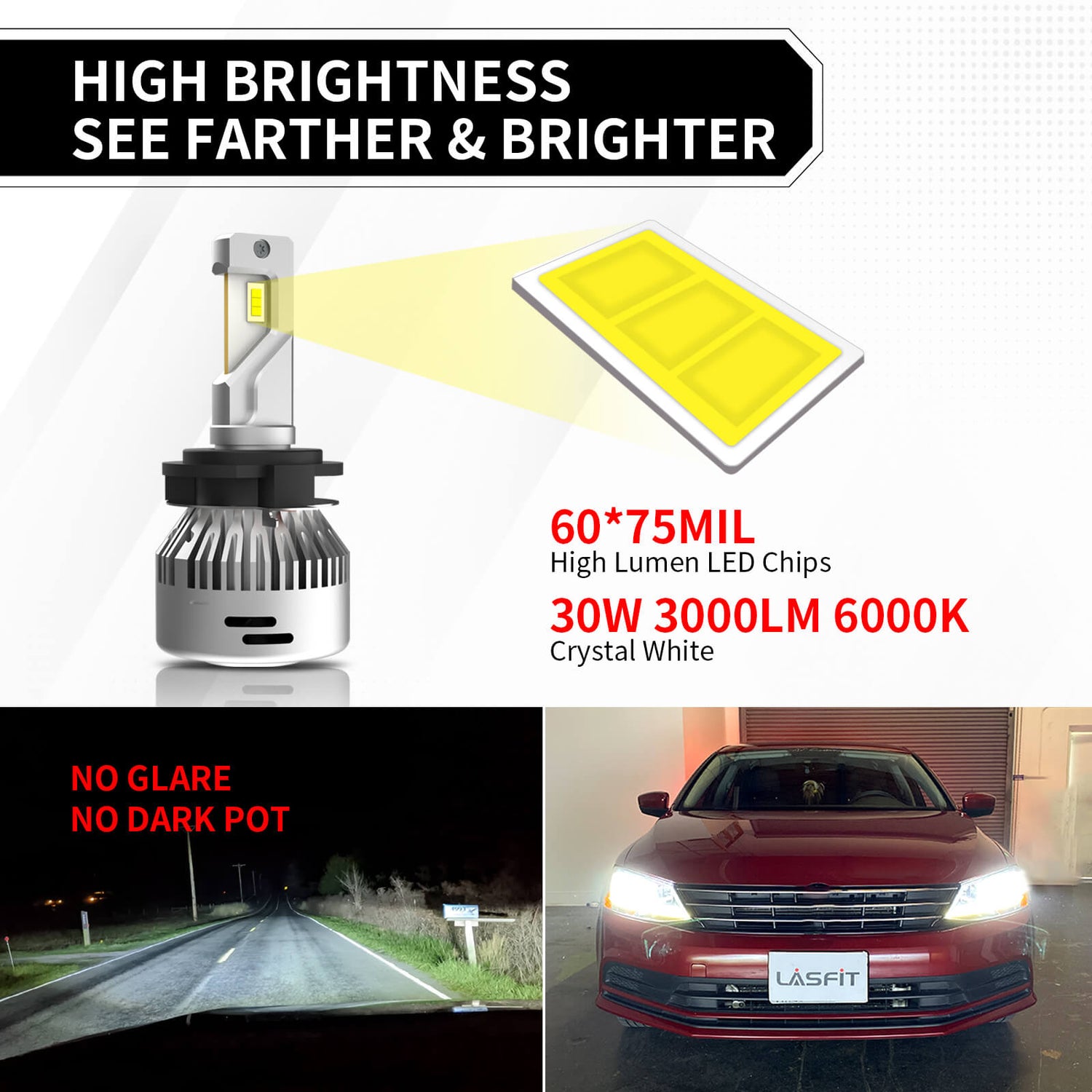 Some vehicles come with unique OEM H7 halogen bulb retainers, meaning that if you choose standard H7 LED bulbs, you’ll need to purchase a special H7 retainer adapter separately to complete the installation. Some users have also reported that LED bulbs feel loose after installation in the light housing. To make DIY installations easier, Lasfit redesigned certain H7 LED bulbs, creating custom H7 LED bulbs. These feature an all-in-one design with the retainer adapter integrated into the bulb, eliminating the need for an extra adapter. As shown in the videos, this custom H7 LED bulb includes a special adapter that combines the H7 mounting plate with the retainer holder. After extensive testing on various cars and repeated analysis of light housing structures, we’ve perfected the design.