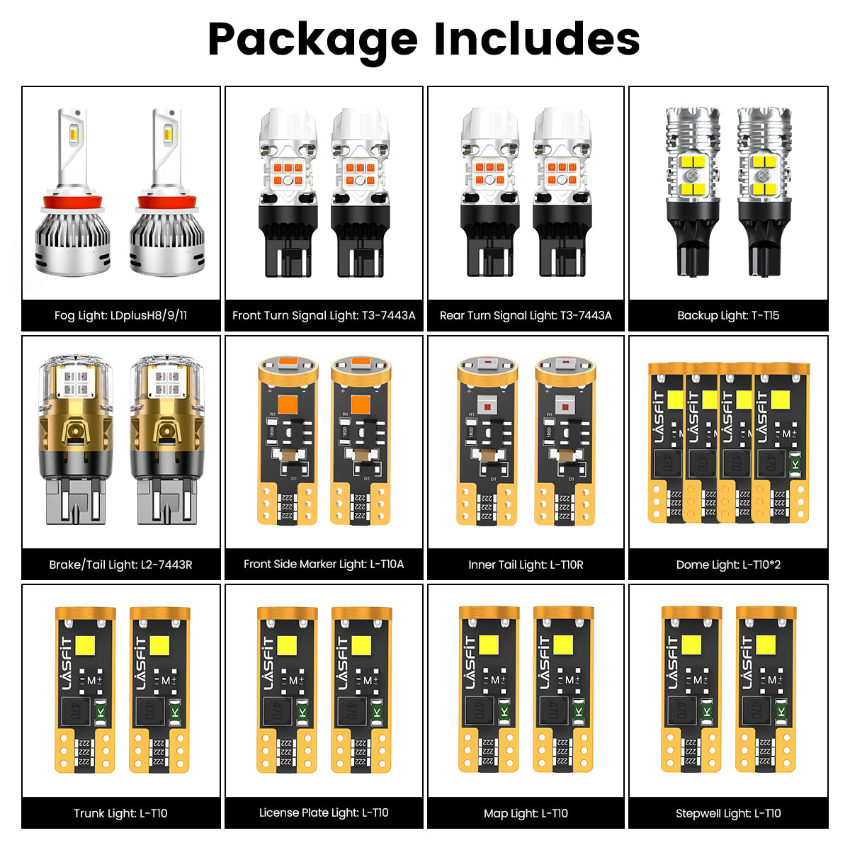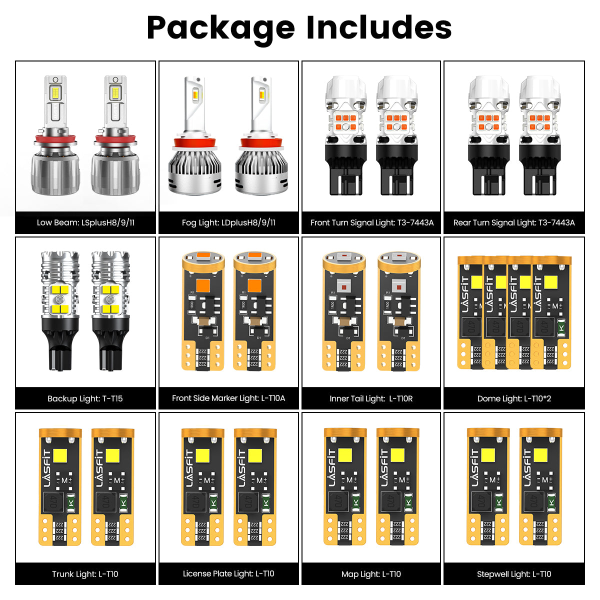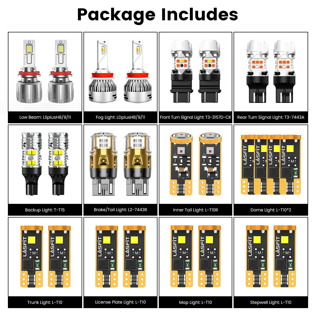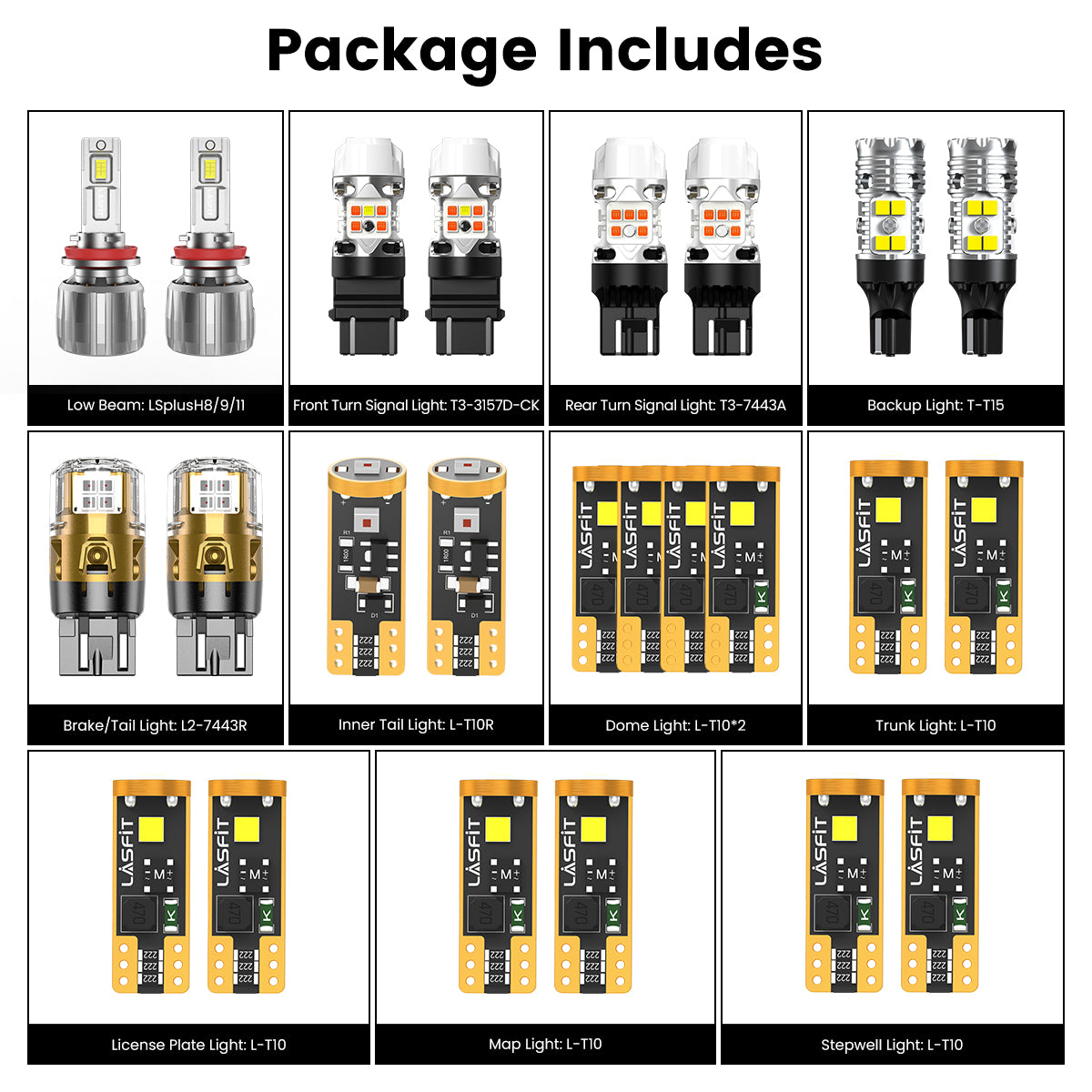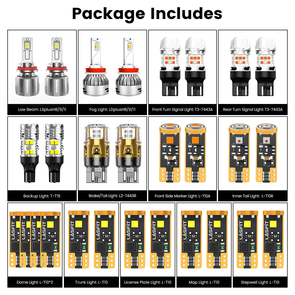 - Ultra-High Brightness. Clear Visibility: The Lasfit LSplus series is equipped with 12 PCS 4575 66*66MTL LED chips, delivering an impressive 65W and 6500LM brightness for your Sienna headlight bulbs.