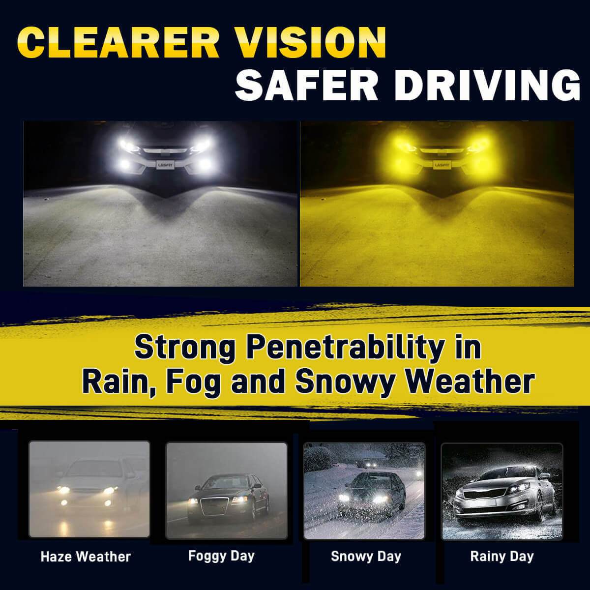 • The white light starts firstly, with a simple on-off-on toggle of your fog light switch to change the light from 6000K to 3000K.