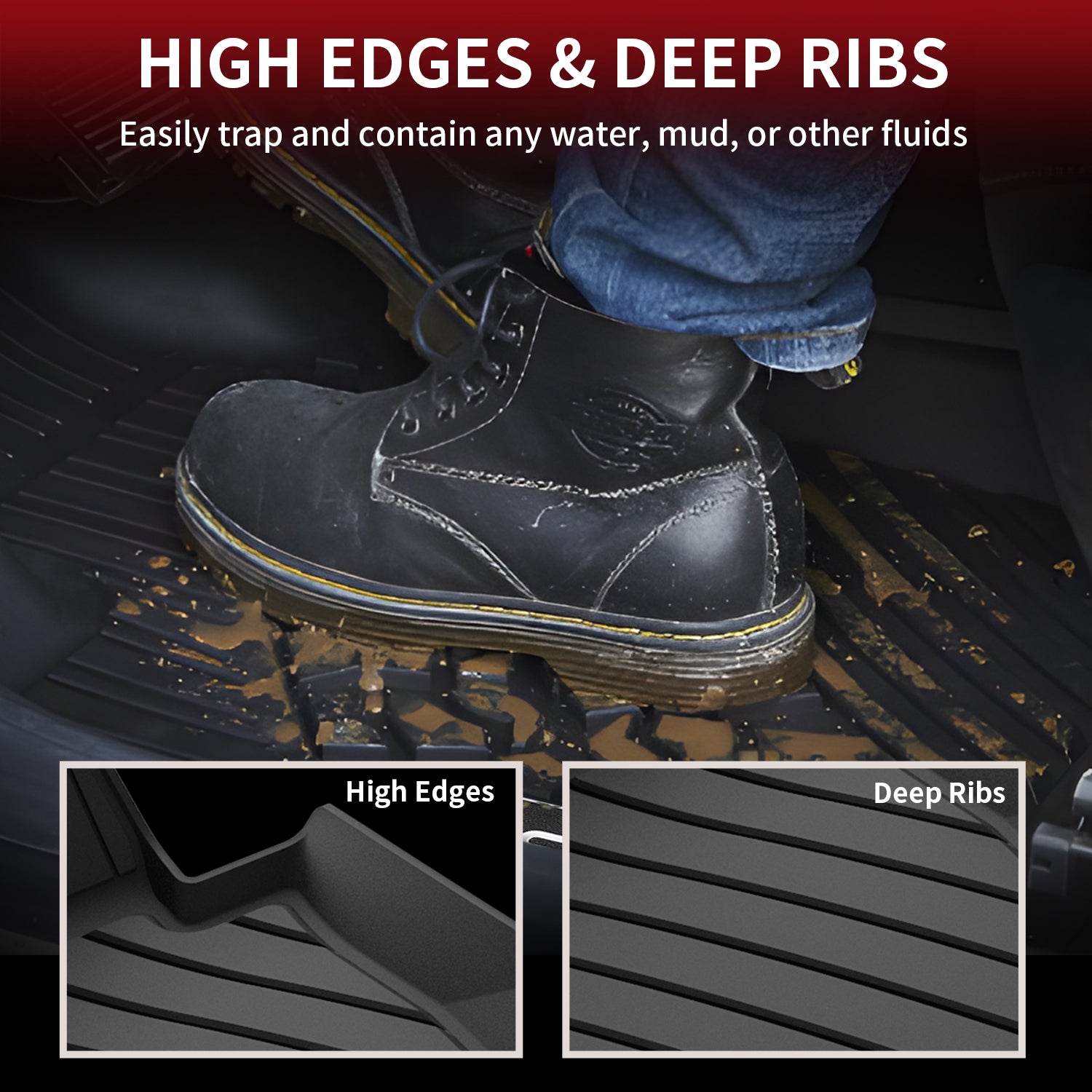 Lasfit's custom-fit floor mats are designed using advanced 3D scanning technology to perfectly contour to the interior of your 2017-2023 BMW 5 Series, ensuring complete coverage of your vehicle's flooring. The anti-slip design keeps the mats securely in place for enhanced safety while raised edges and innovative channels effectively trap spills, debris, and dirt, making cleanup a breeze.