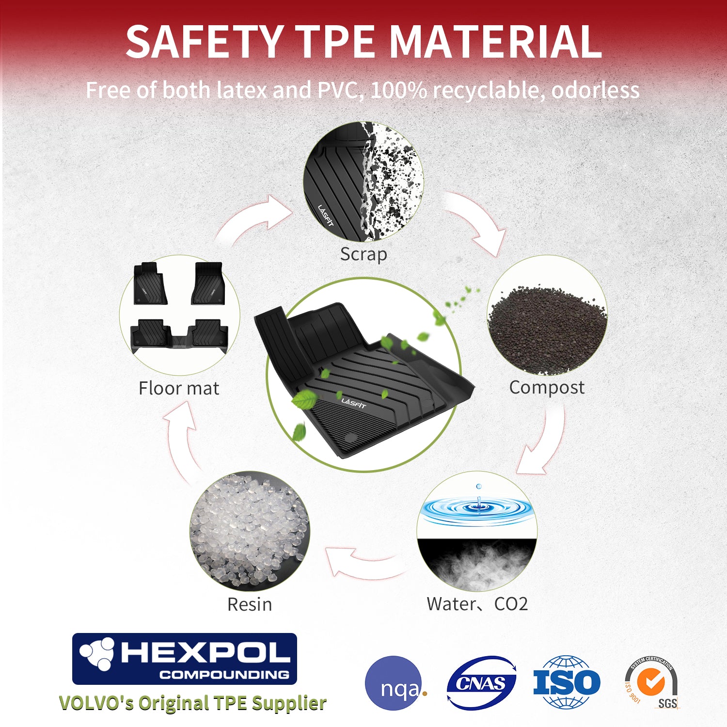 Our TPE (Thermoplastic Elastomer) floor mats offer distinct advantages over conventional rubber mats. TPE mats are more flexible, durable, and resistant to wear and tear. They are also environmentally friendly, being made from recyclable materials and free from harmful chemicals, making them a safer and more sustainable option for your BMW 5 Series.
