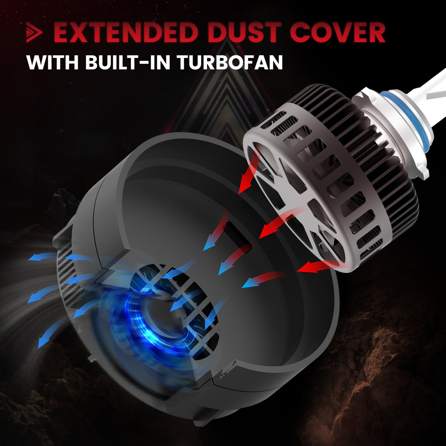 Includes a 1.57-inch cooling fan and heat sink at the base, plus a 1.57-inch turbo fan embedded in the dust cover. This unique dual cooling system efficiently dissipates heat, keeping your lights cool and stable.