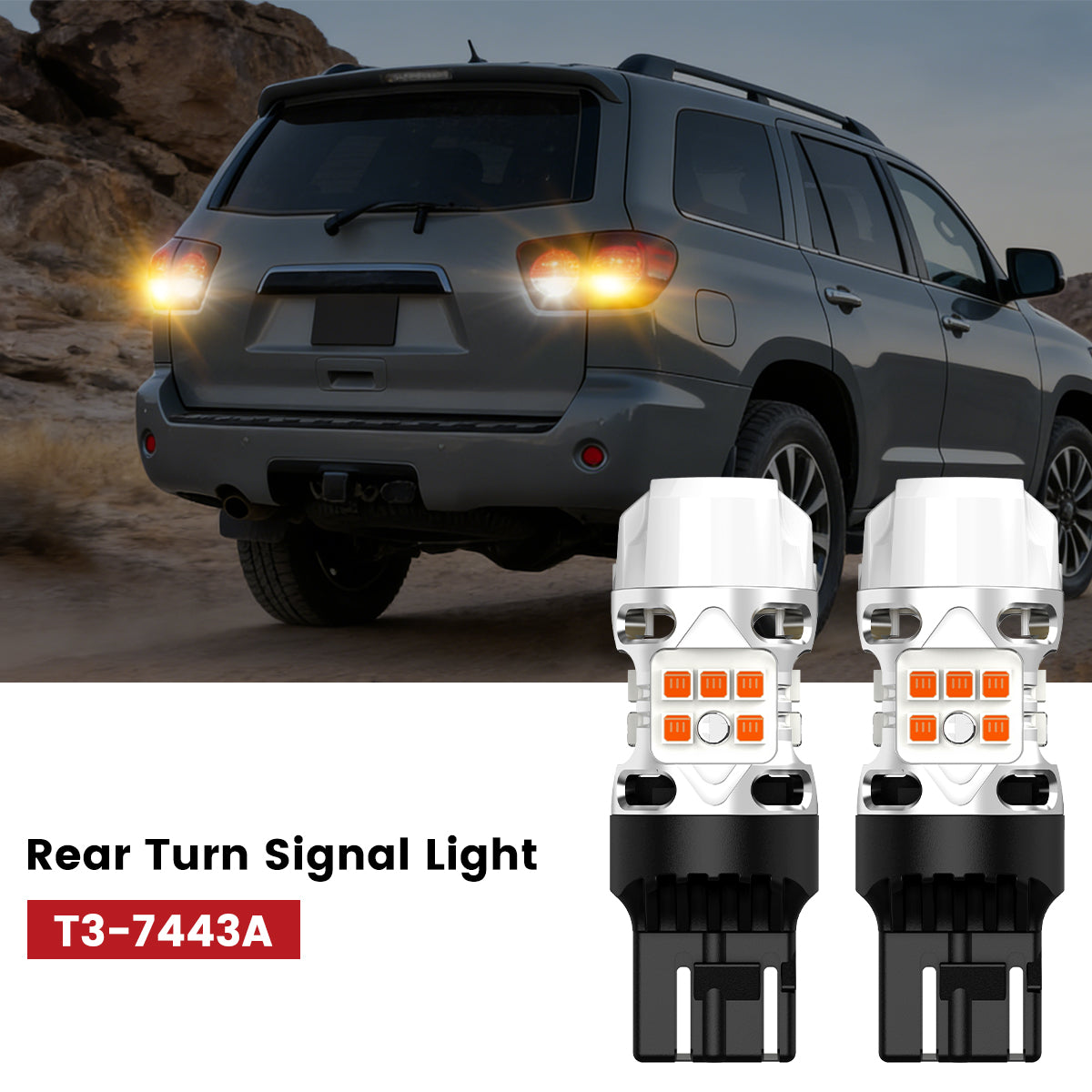 | Rear Turn Signal Light | 7443 | T3-T20 Series | 24W/2000LM | bright amber, premium stability, built-in canbus decoder |