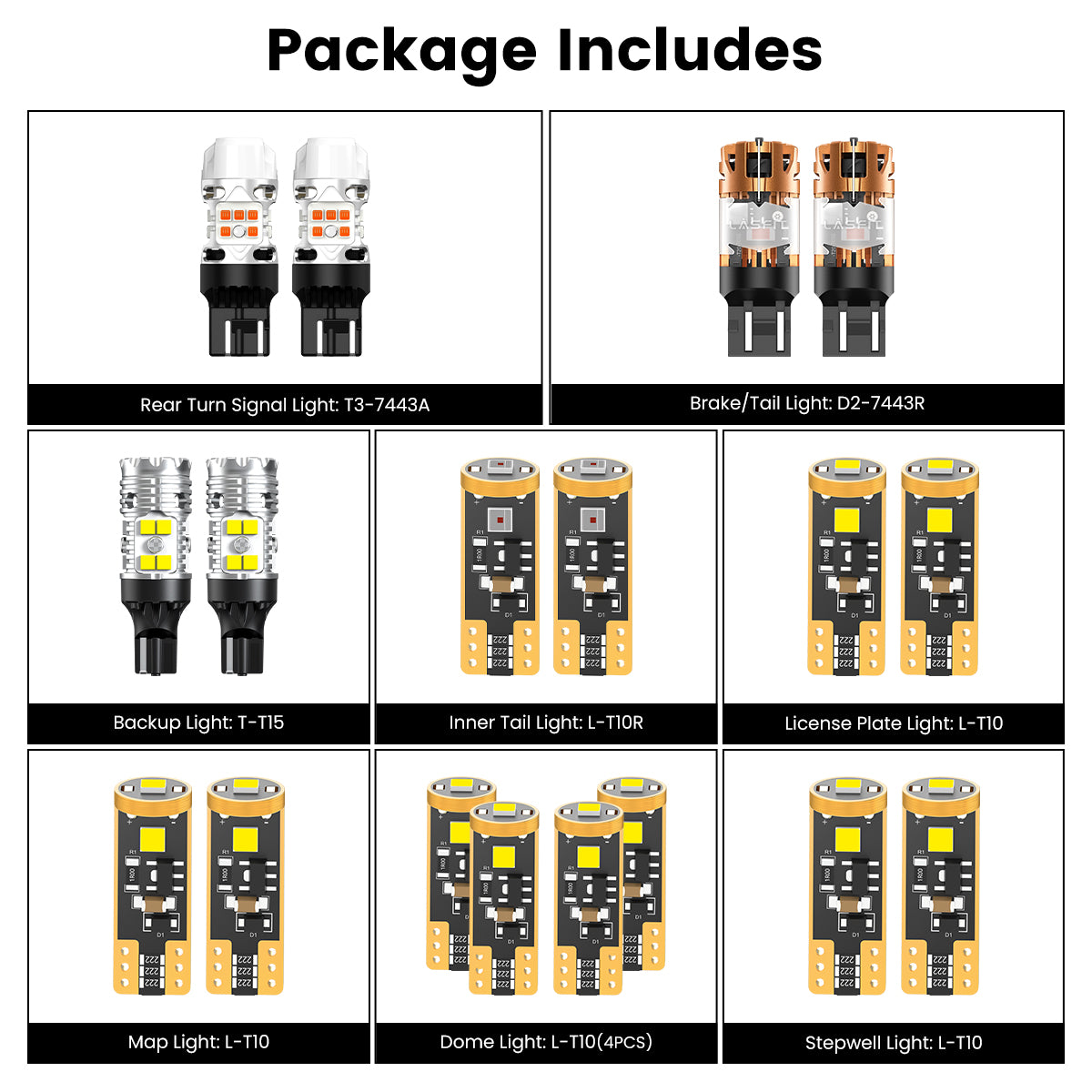 | Front Turn Signal Light(for 2023-2026) | 7443 | T3-T20 Series | 24W/2000LM | dual-color switchback design, no error code, easy installation |