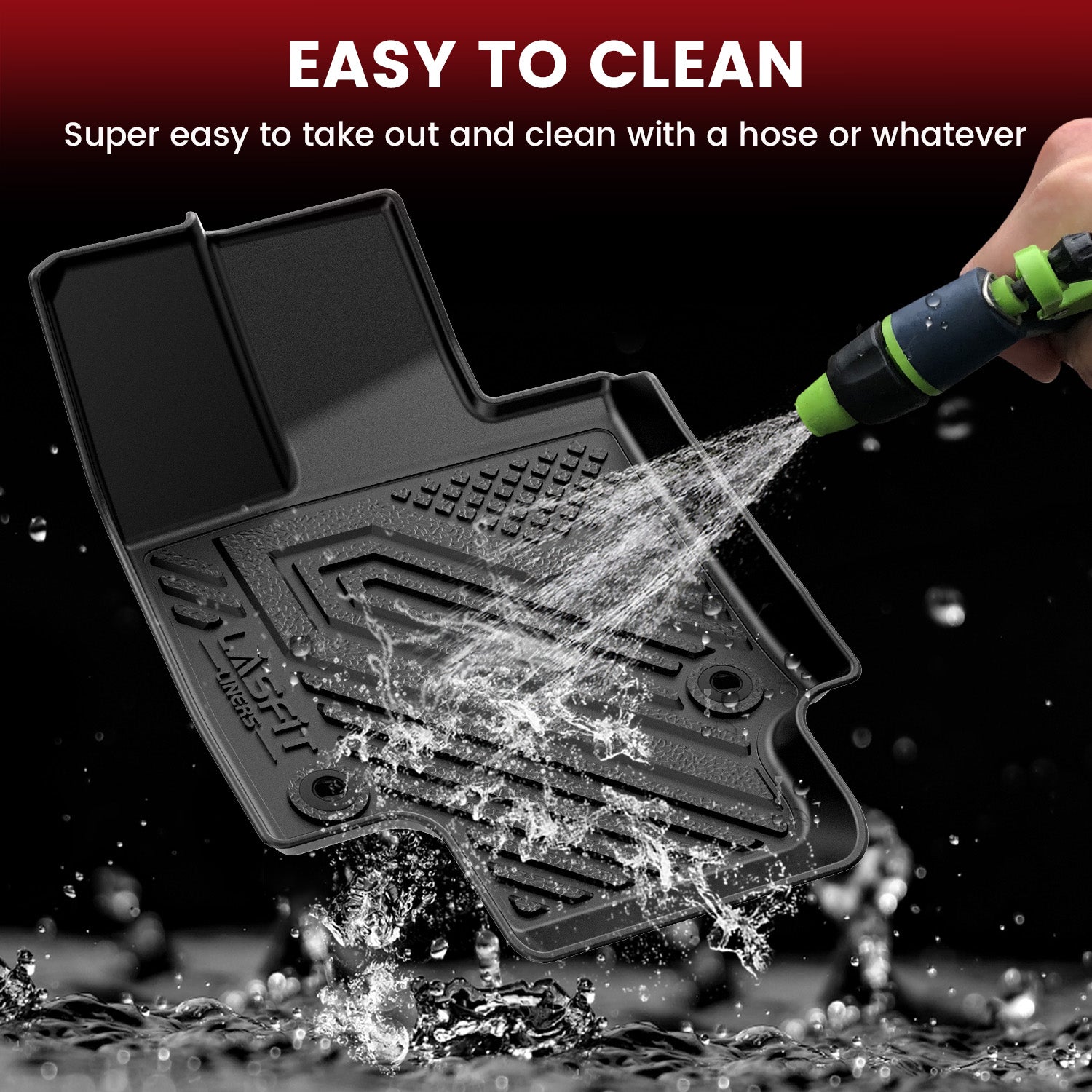 Our all-weather floor mats are designed to withstand any weather condition. They are stain-resistant, waterproof, and anti-slip, making them easy to clean and maintain. Built from high-quality materials, these liners won't break down under extreme weather or daily wear like rain, slush, snow, or mud. The durable edges resist slouching and won't deform in winter. After cleaning, the mats will look brand new, maintaining their effectiveness and appearance.