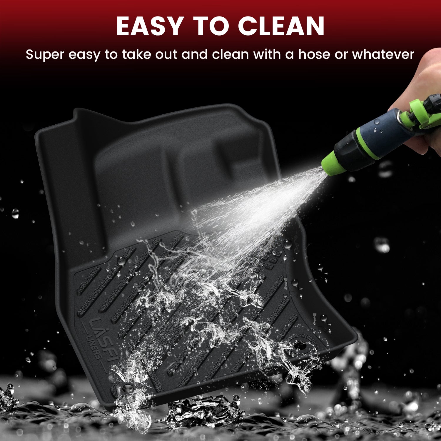 A quick rinse and wipe bring Lasfit floor mats back to like-new condition.