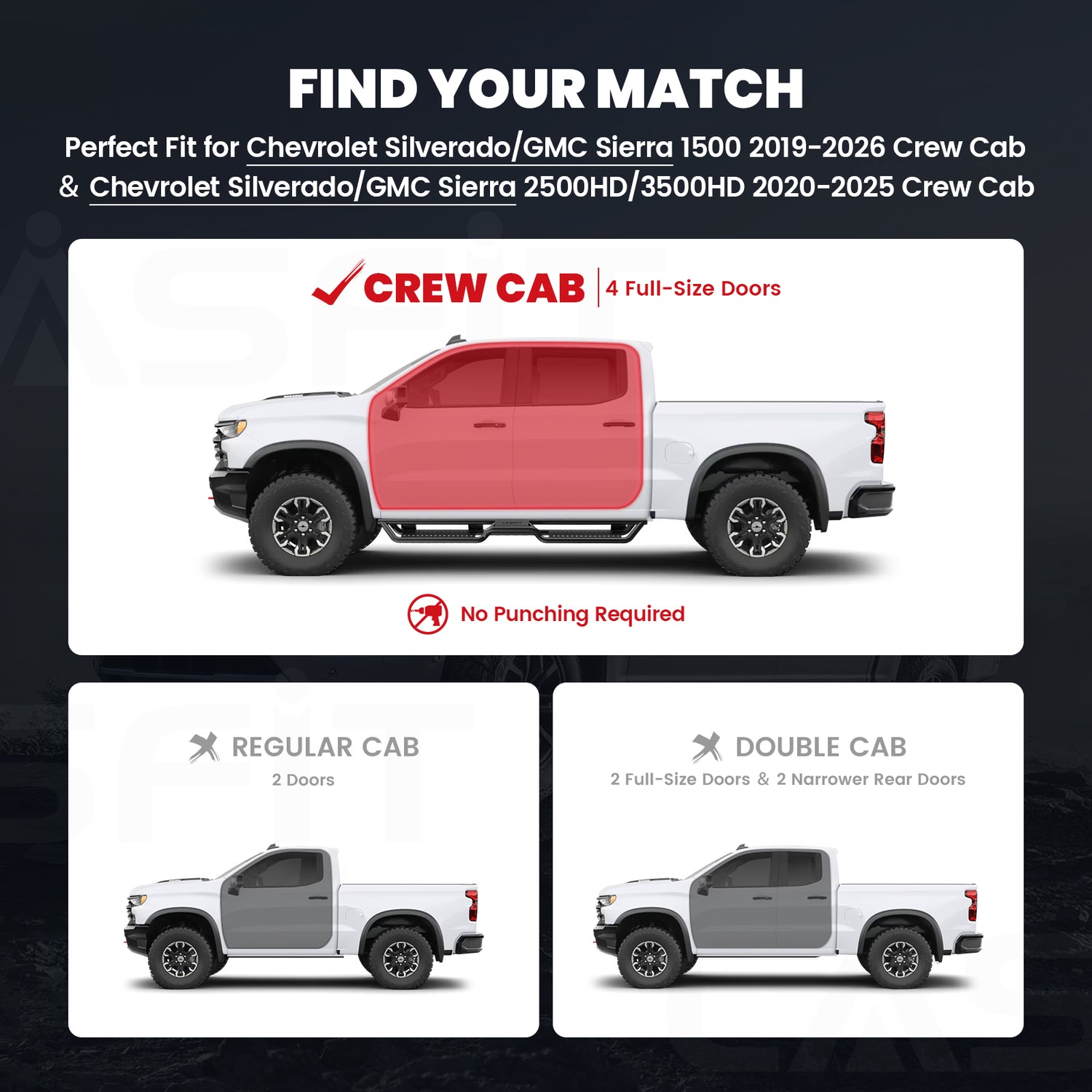 Fit for 2019-2026 Chevrolet Silverado 1500 Running Boards Side Steps, Fit Crew Cab ONLY