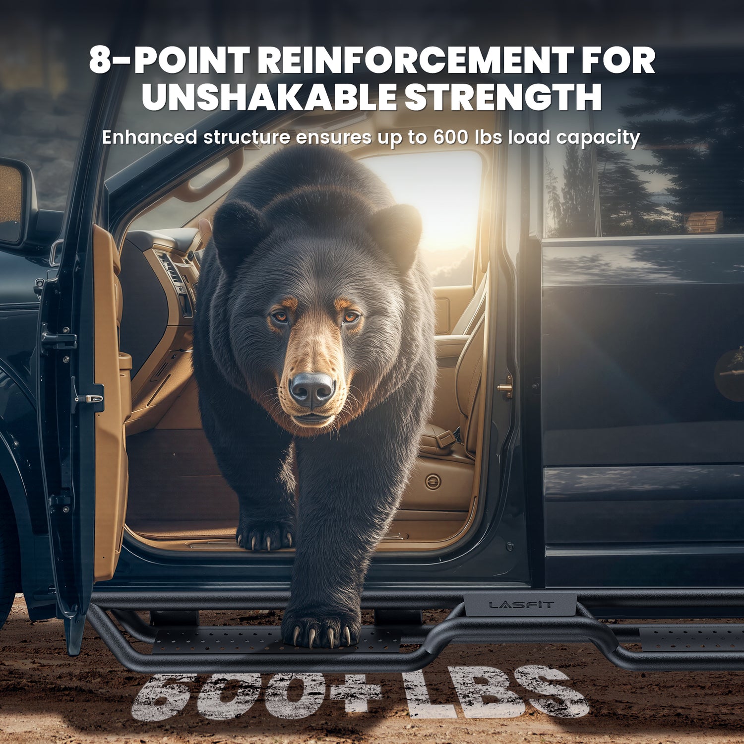 Not only do Lasfit running boards provide easier access, but they also protect your vehicle’s sides from scratches, scuffs, and dirt, helping to maintain your truck’s appearance even after challenging off-road adventures.
