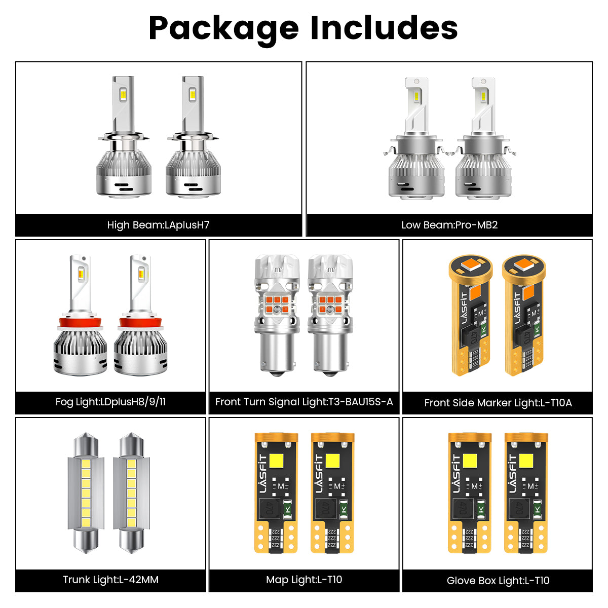| High Beam | H7 | LA Plus Series | 30W/3000LM | high brightness, 360° illumination, optimal output beam pattern |