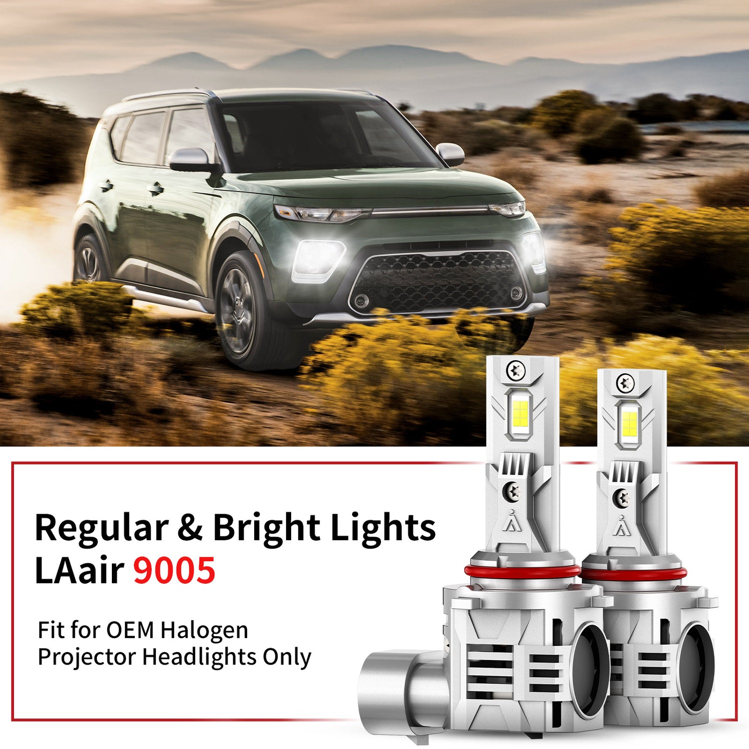 We've got you covered with a selection of compatible LED bulbs tailored to the 2020-2025 Kia Soul. Our latest offering, the LAair9005 LED bulb, is designed specifically for the OEM halogen headlights with projectors in the Kia Soul. Additionally, we provide the tried-and-true LAplus H4 LED bulb, ideal for those with OEM halogen headlights featuring reflectors in their Kia Soul.