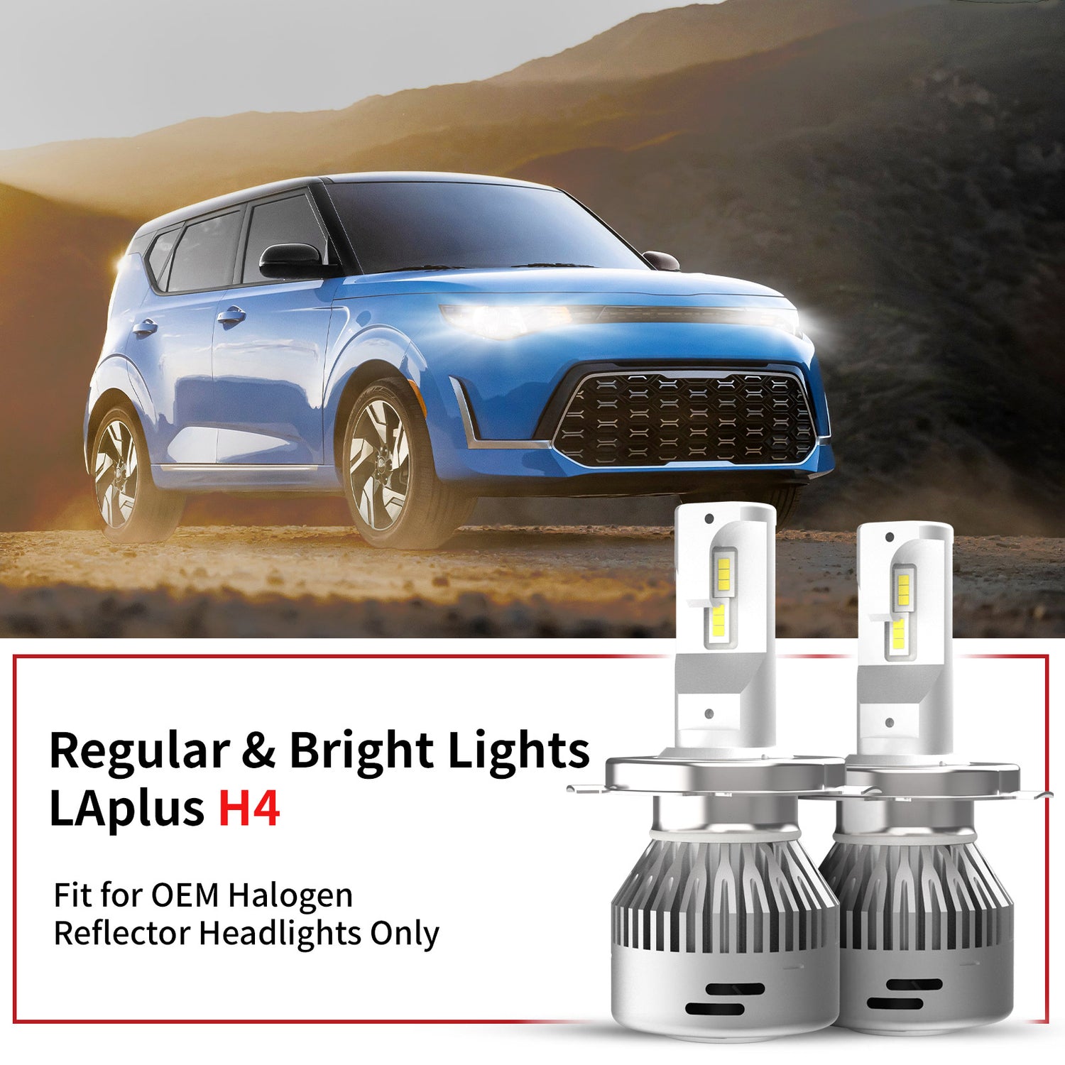 For the 2020-2025 Kia Soul equipped with factory halogen reflector headlights, we offer a practical solution to enhance your lighting. Our LAplus H4 LED bulbs feature 12 powerful LED chips, delivering an impressive 3000 lumens per bulb. With a slimmer 2.00mm copper substrate and a 360-degree adjustable socket, you can customize the beam pattern to the perfect.