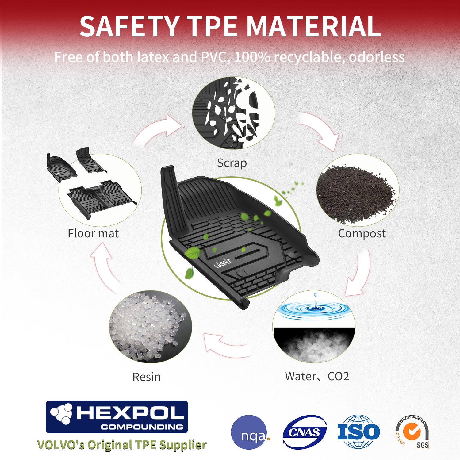 Constructed from eco-friendly, low-density TPE material, our 1st row floor mat is not only easy to install but also simple to clean. A quick rinse and wipe easily remove dirt, mud, or debris, keeping the mat looking like new.