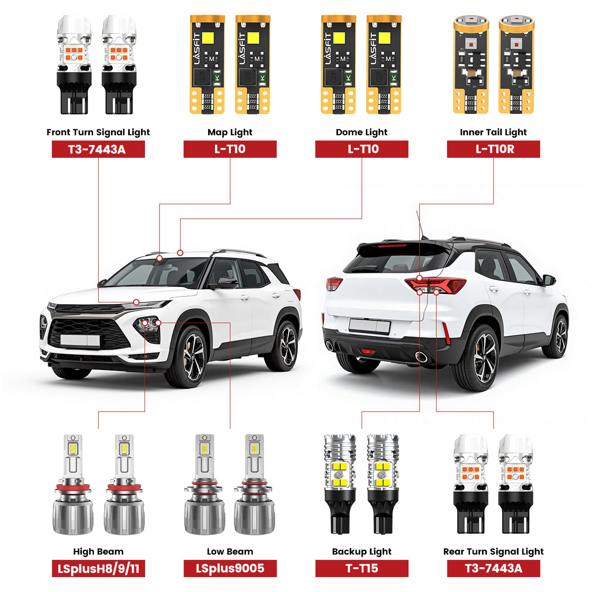 Lasfit offers bright, durable, and high-quality LED bulbs specifically designed for different trims of your Chevrolet Trailblazer. With quick and easy installation, you can upgrade your lighting in minutes and enjoy a brighter, safer driving experience.