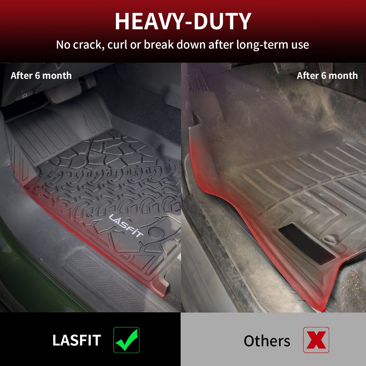 Lasfit provides top-tier floor mat solutions tailored for Ford Bronco models, offering exceptional protection and style for your vehicle's interior. These all-weather floor mats, made from durable TPE material, are custom-fit to ensure a precise match, combining both functionality and design to enhance your Bronco’s interior.
