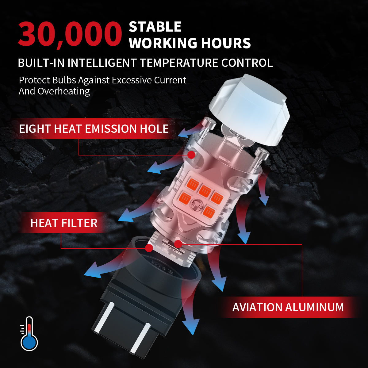 | Front Turn Signal Light | 4257 | T3-T20 Series | 24W/2000LM | Upgraded Can-Bus decoder, error free, easier to install |