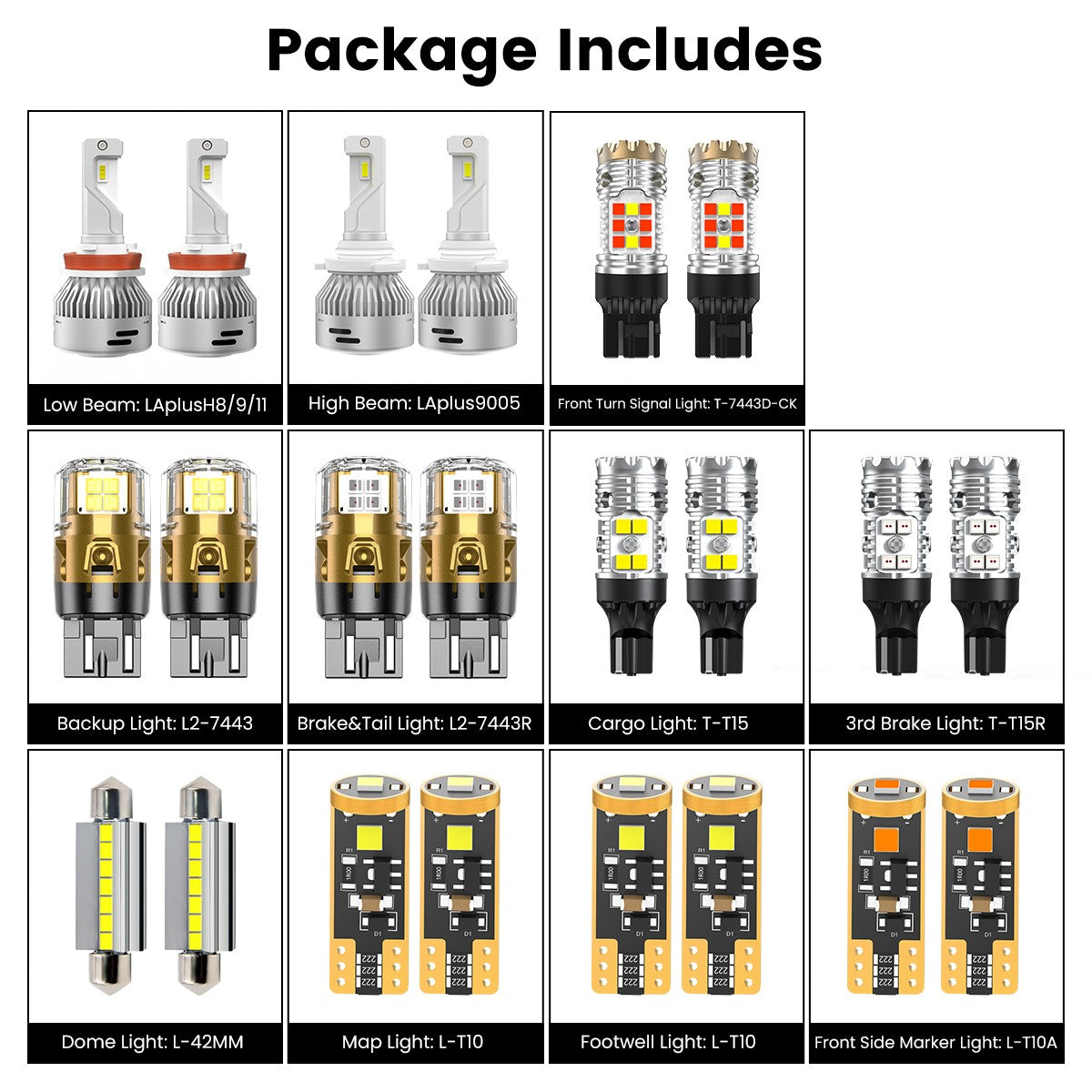| Brake Light | 7443 | L2-T20 Series | 800LM | brilliant red, 360° illumination, non-polarity design |