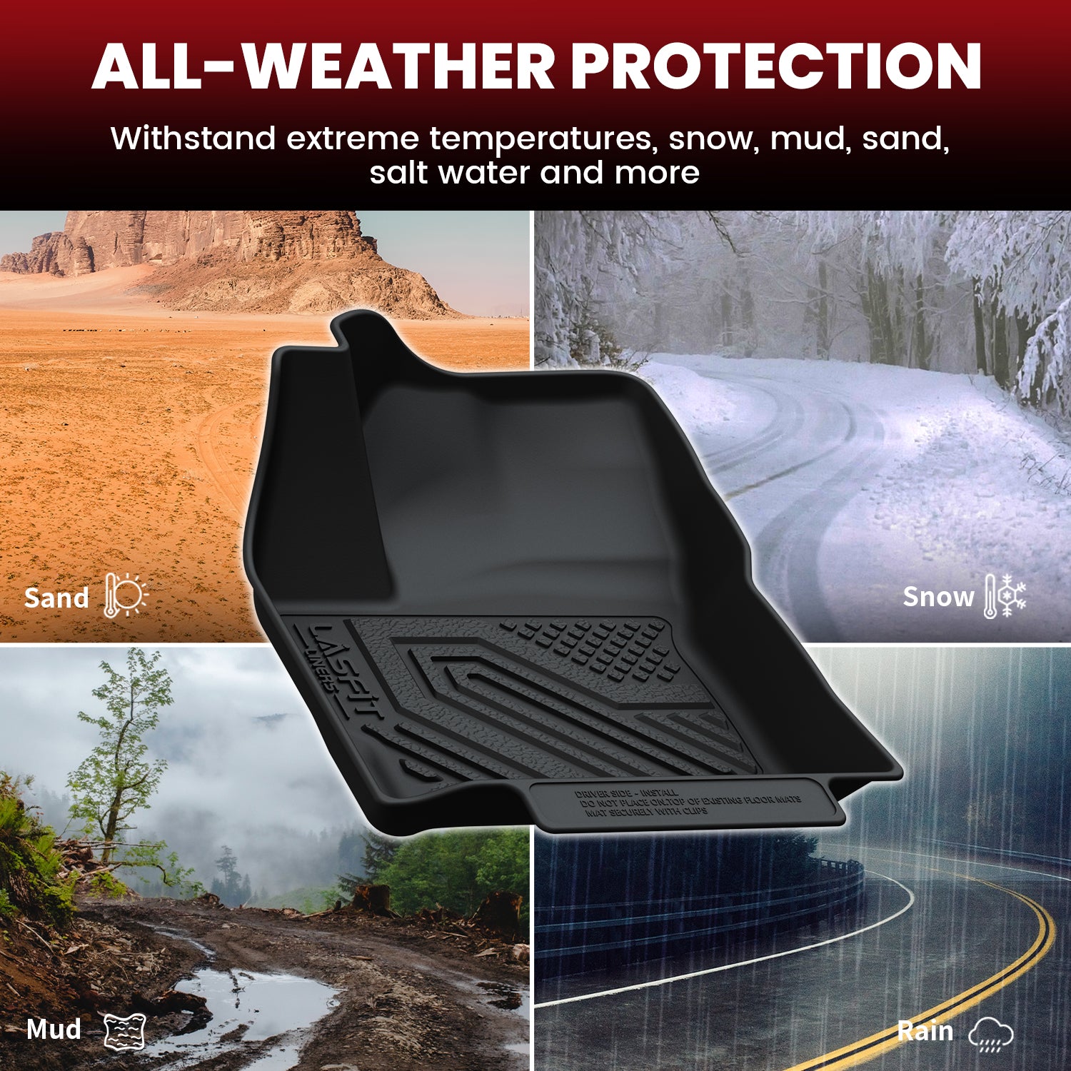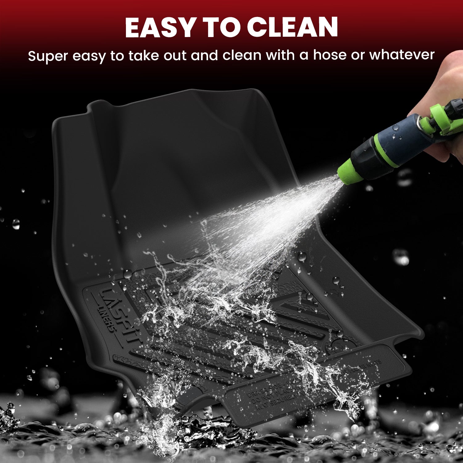Built for all-weather performance, Lasfit’s floor and cargo liners are waterproof, stain-resistant, and anti-slip—perfect for handling rain, slush, snow, and mud. Their rugged construction resists cracking and curling even in freezing temperatures. Reinforced raised edges help contain spills and messes, while the easy-clean surface ensures your mats look fresh with just a quick rinse. Designed to perform and last, these mats deliver durability and convenience with every drive.