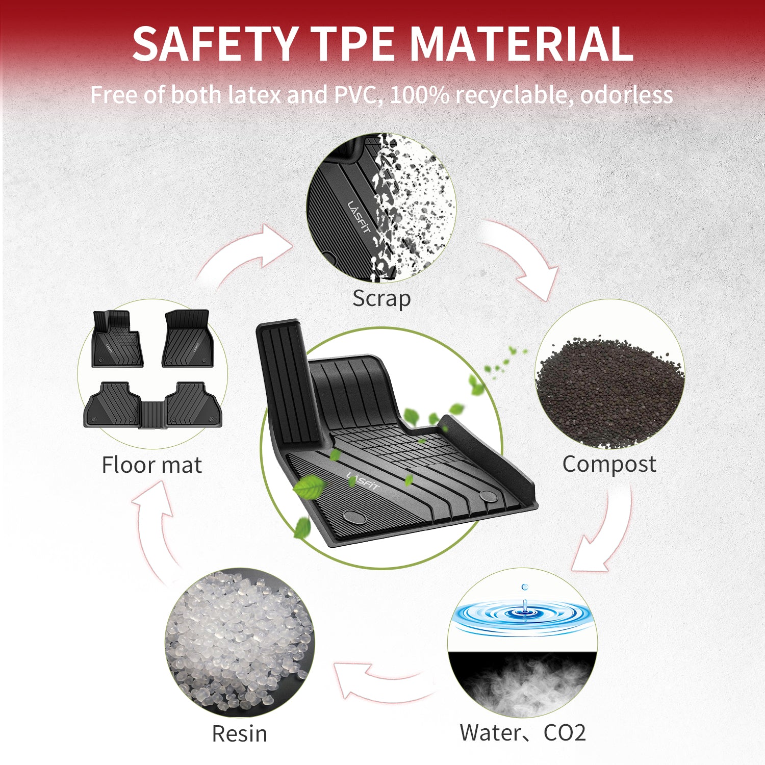 Made from 100% Brand-new Thermoplastic Elastomer (TPE) same as VOLVO interior trim used imported from Sweden that can 100% regenerate and is completely environmentally friendly.