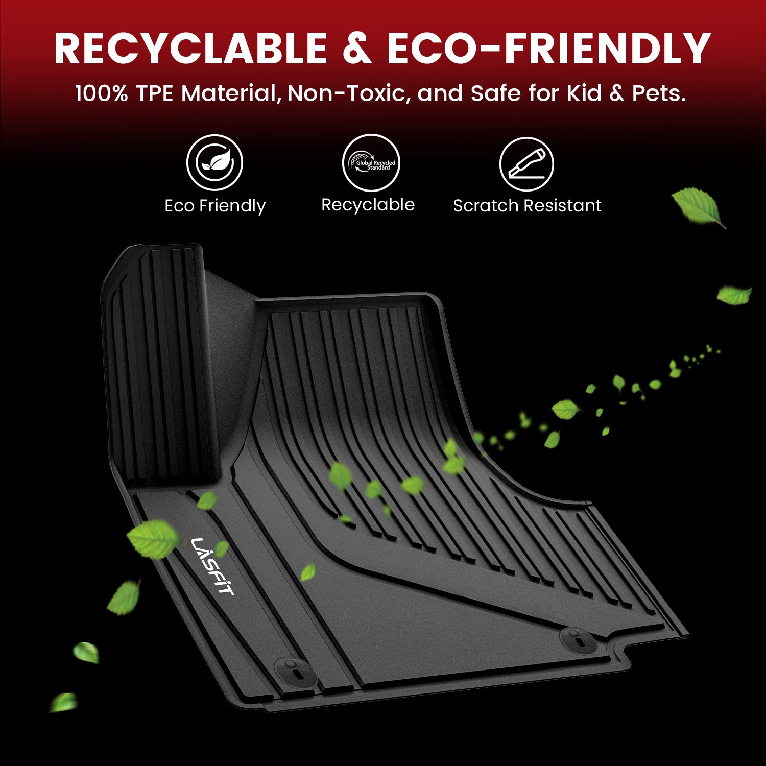 Lasfit floor liners are made from 100% Brand-new Thermoplastic Elastomer (TPE), which is extremely elastic and wearable. It has a comfortable feeling of feet, prevent accidental skidding even when your feet are wet. The unique groove design also increases the friction of the mat, maintaining excellent durability even with prolonged use.