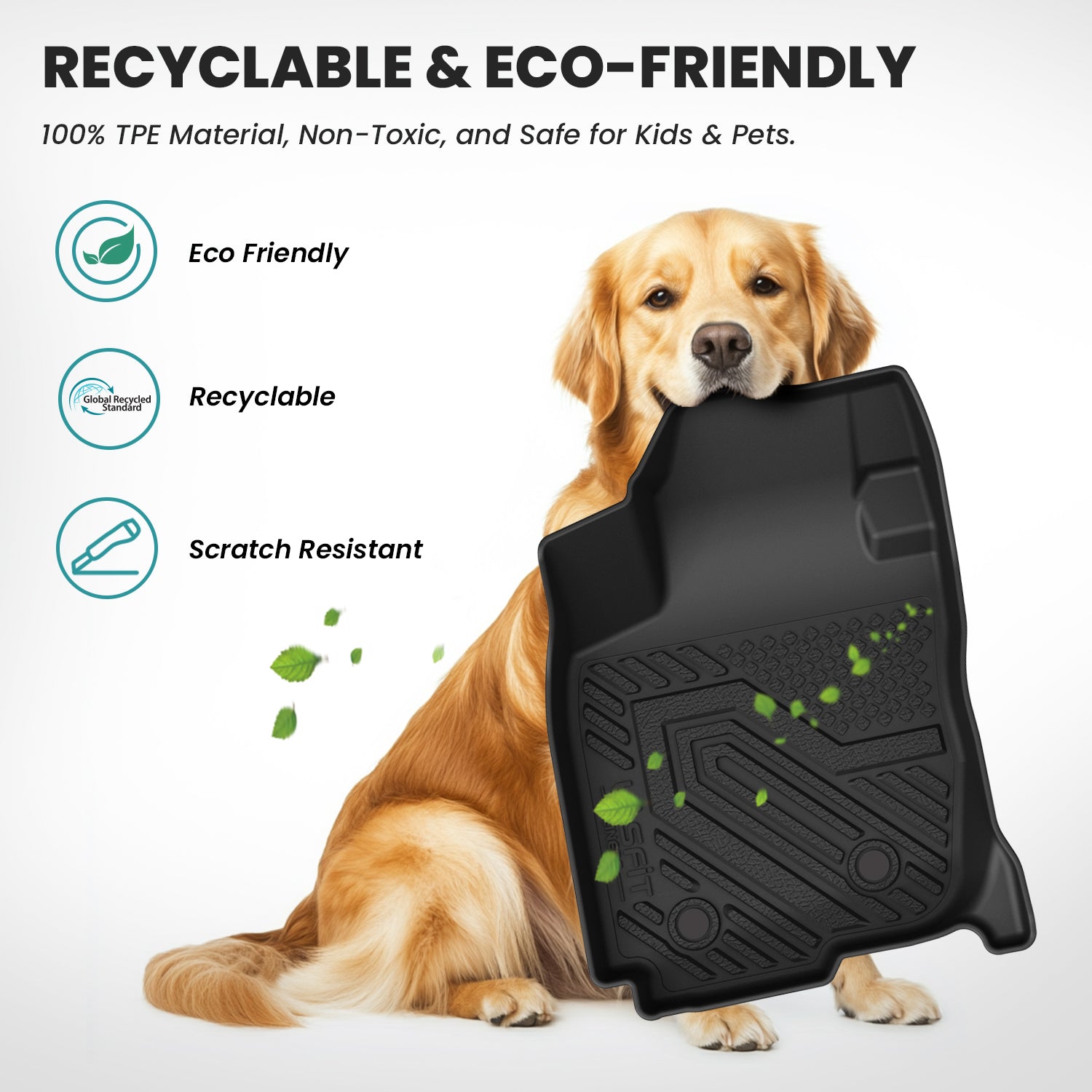 - Safe & Eco-Friendly - Crafted from 100% TPE material, our floor liners are non-toxic and safe for kids, pets, and sensitive groups. Certified with the GRS Gold eco-label, they provide a healthier choice for your family and the planet.