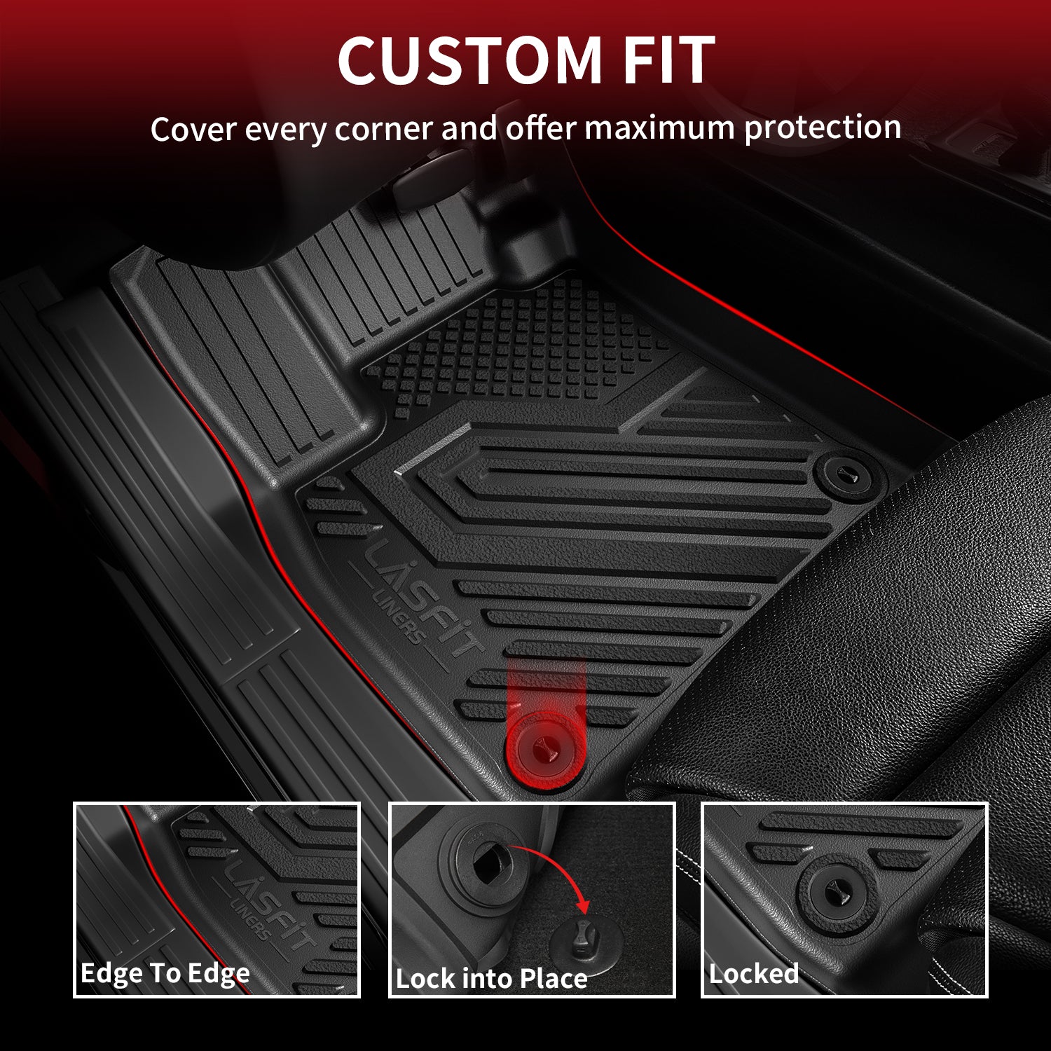 Lasfit floor mats are custom-made using advanced 3D scanning technology to measure every corner and contour of your vehicle’s floor, ensuring a perfect fit for maximum coverage and protection. Made from low-density, flexible TPE material, these mats are easy to clean and install. Simply hose them off and dry with a towel to remove all dirt, including mud, slush, and dust, leaving the liners looking brand new.