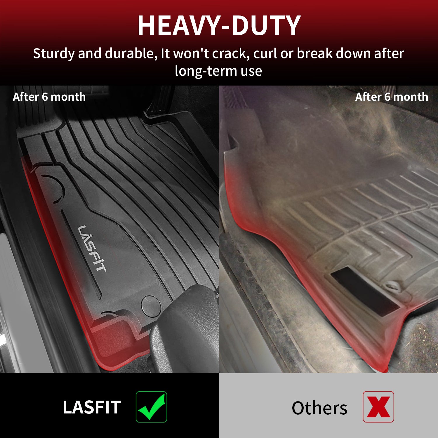 Lasfit TPE (Thermoplastic Elastomer) floor mats offer significant advantages over traditional rubber mats. They are more flexible, durable, and resistant to wear and tear. Made from recyclable materials and free from harmful chemicals, TPE mats are environmentally friendly and provide a safer option for your Mercedes-Benz GLC.