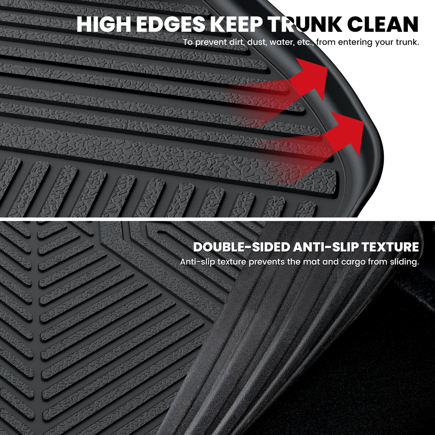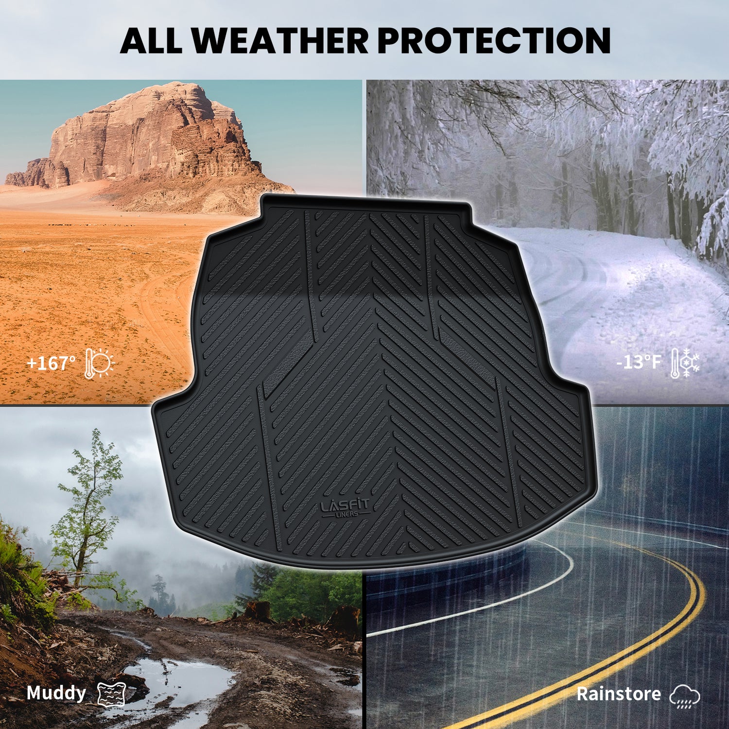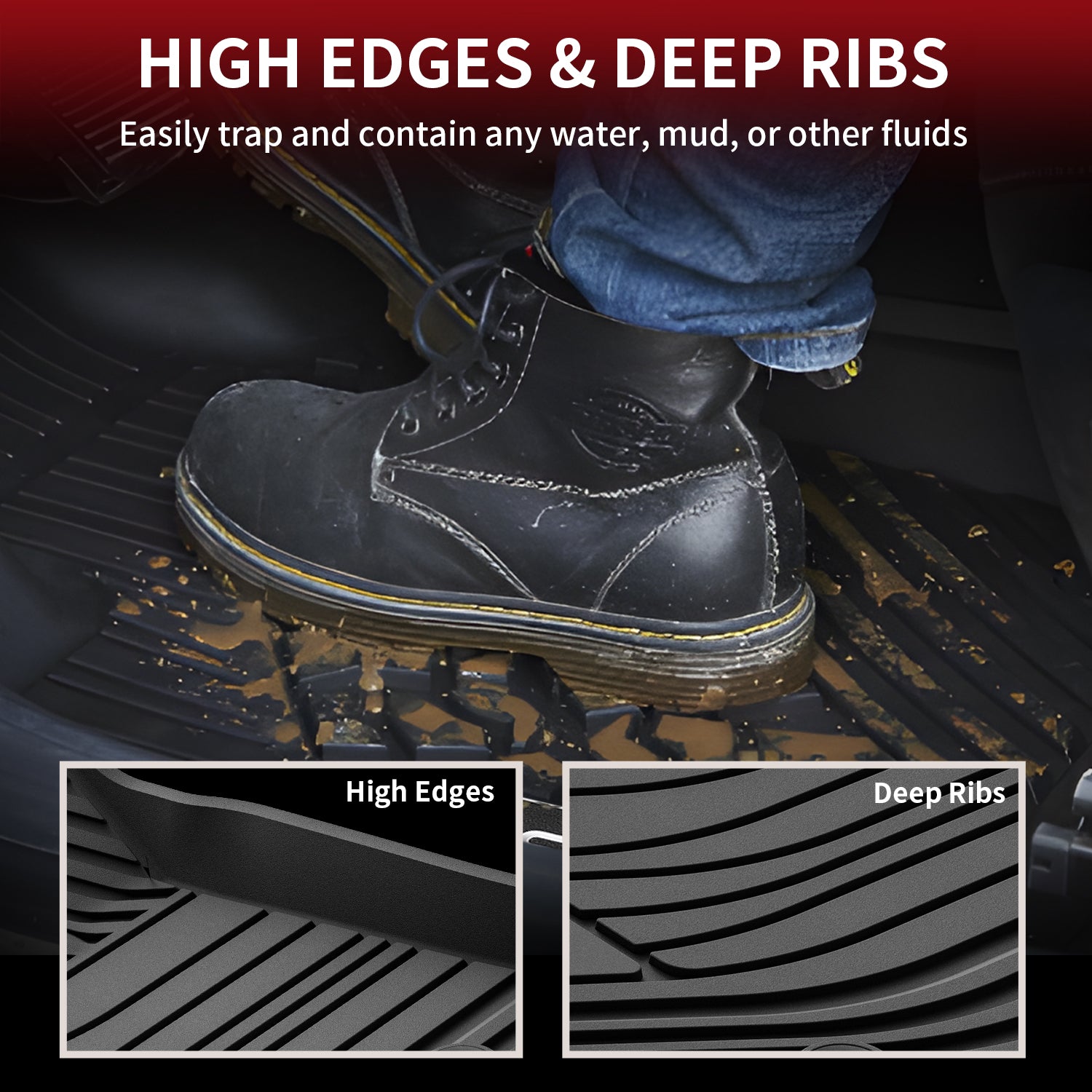 Our all-weather floor mats are designed to withstand any weather condition. They are stain-resistant, waterproof, and anti-slip, making them easy to clean and maintain. Built from high-quality materials, these liners won't break down under extreme weather or daily wear like rain, slush, snow, or mud. The durable edges resist slouching and won't deform in winter. After cleaning, the mats will look brand new, maintaining their effectiveness and appearance.