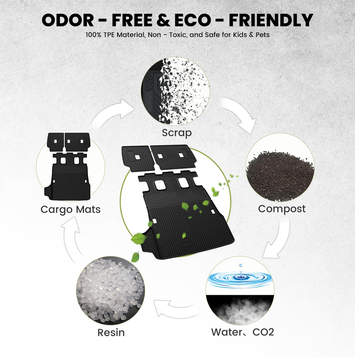 - Safe & Eco-Friendly - Crafted from 100% TPE material, our floor liners are non-toxic and safe for kids, pets, and sensitive groups. Certified with the GRS Gold eco-label, they provide a healthier choice for your family and the planet.
