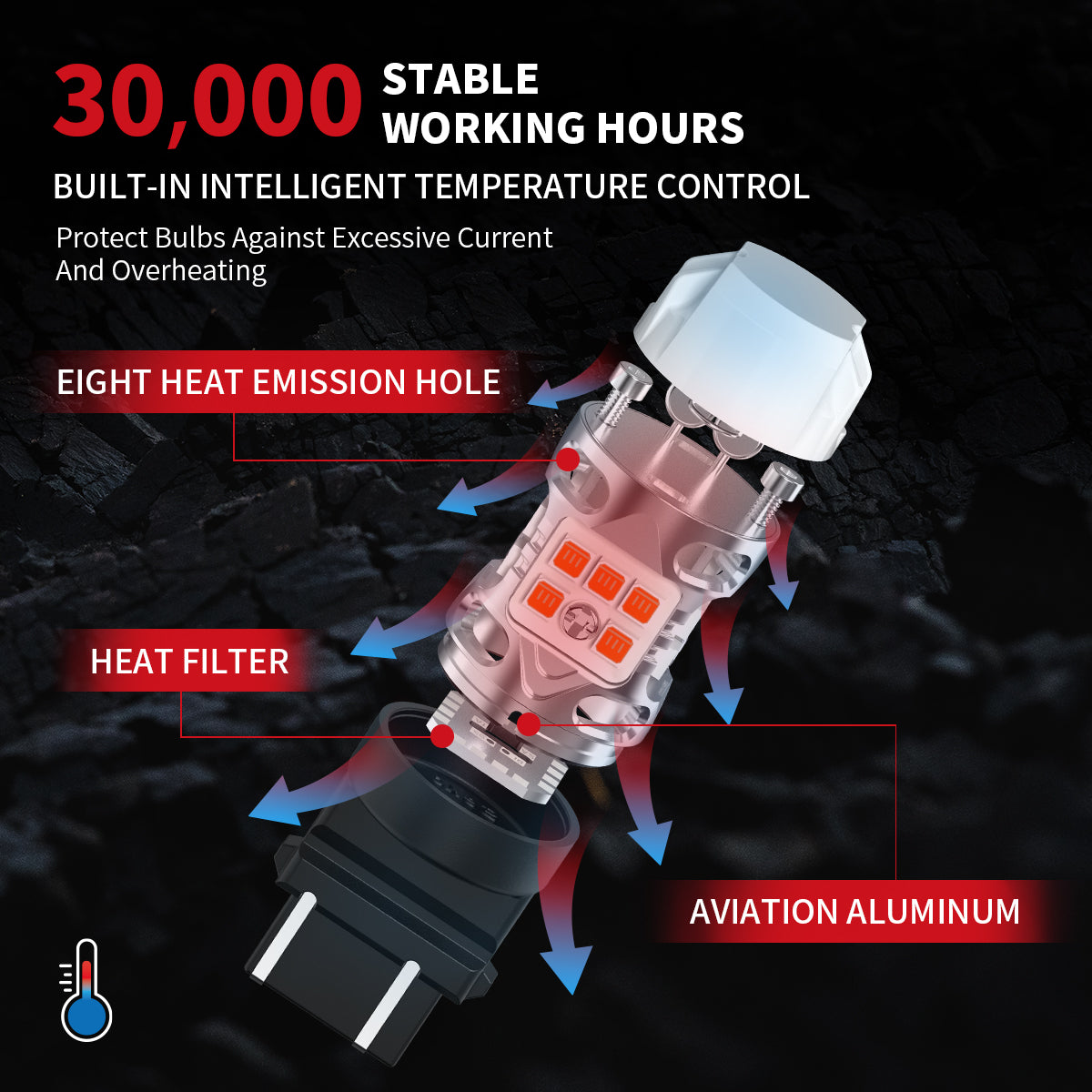 Tired of hyper flash and dashboard warning lights after installing LED bulbs? The T3 series solves this problem with a ceramic resistor built directly into the bulb, eliminating the need for external resistors. That means easier installation, lower costs, and a cleaner setup—just plug and play.