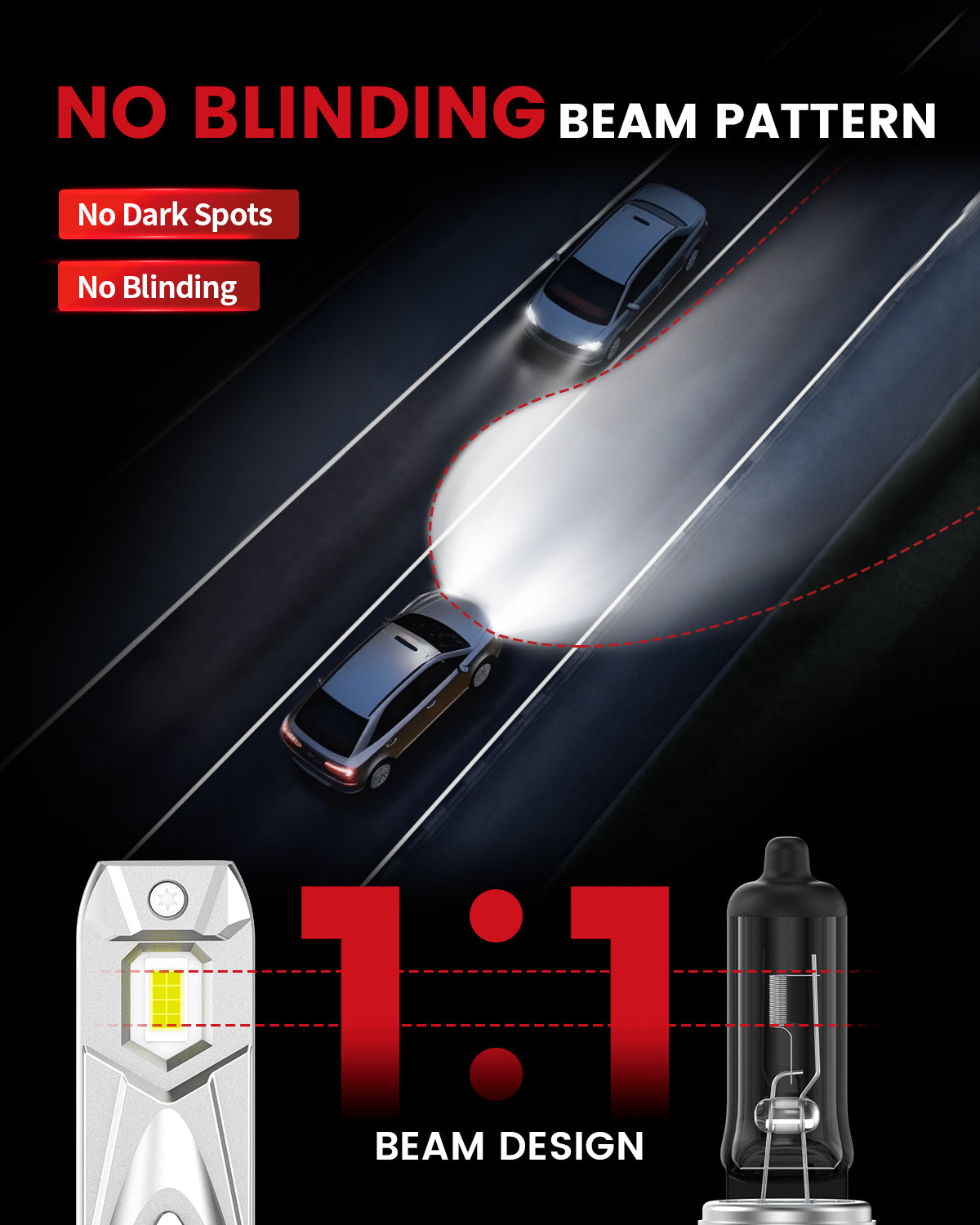 Featuring 16 LED chips per bulb that emit an impressive 3500LM of brightness. Compared to OEM halogen headlights, which typically produce 800LM to 1000LM, the LCair is 400% brighter. This significant increase in brightness greatly enhances your visibility, especially when driving on dark country roads. Upgrade to the LCair for improved safety and a superior driving experience.