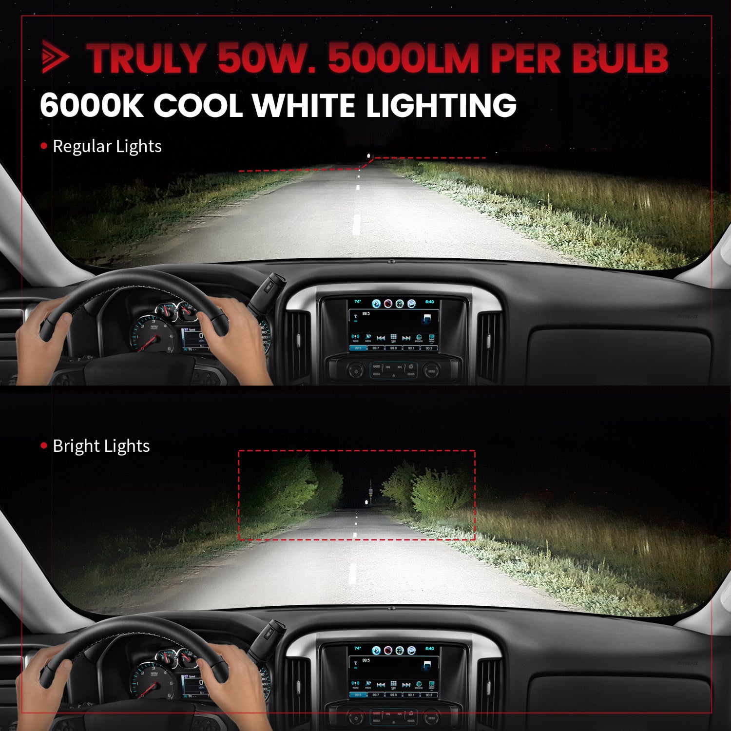 - 600% Brighter than Halogen: Achieve unmatched clarity with 50W and 5000LM per bulb, significantly improving visibility.